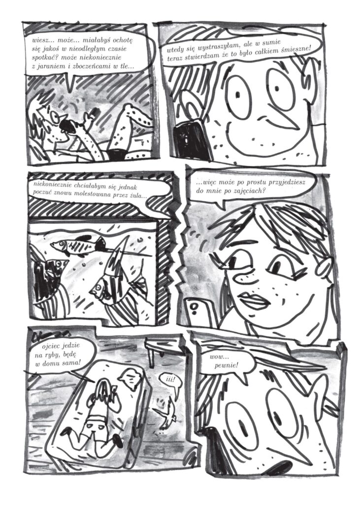 Dokładnie rok trzeba było czekać na szóstą część serii „Dziadostwo”. Warto jednak było, bo nowy tom wprawdzie nie doprowadza dotychczasowych wątków do punktu kulminacyjnego, ale za to dokłada nowe pytania i wątpliwości. Randka w mieszkaniu, gdy ojciec wyjechał na ryby? Kuzyn antyszczepionkowiec zakłada własną domową radiostację? Picie piwa na ławce to przeżytek, więc warto w tym celu wejść na dach nieczynnej hali kolejowej? Jeśli czujesz, że powyższe klimaty z Tobą rezonują, nie przegap najnowszej majowej premiery spod szyldu „Dziadostwo”!