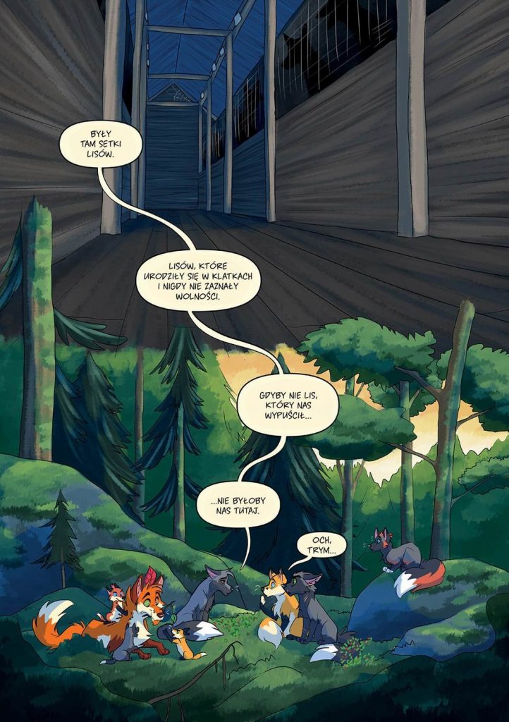 Dwóm lisom, Lukasowi i Trymowi, szczęśliwie udaje się uciec z fermy futrzarskiej. Jednak szybko się okazuje, że życie na wolności wcale nie jest takie łatwe. Lukas, który dotąd spędzał czas wyłącznie w niewoli, nie potrafi tropić ani pływać. Wkrótce przekonuje się też, że dzikie lisy, aby przetrwać, muszą polować na inne zwierzęta. Co gorsza, śladem ich obu podąża pewien niebezpieczny drapieżnik. A może życie w zamknięciu wcale nie było takie złe…