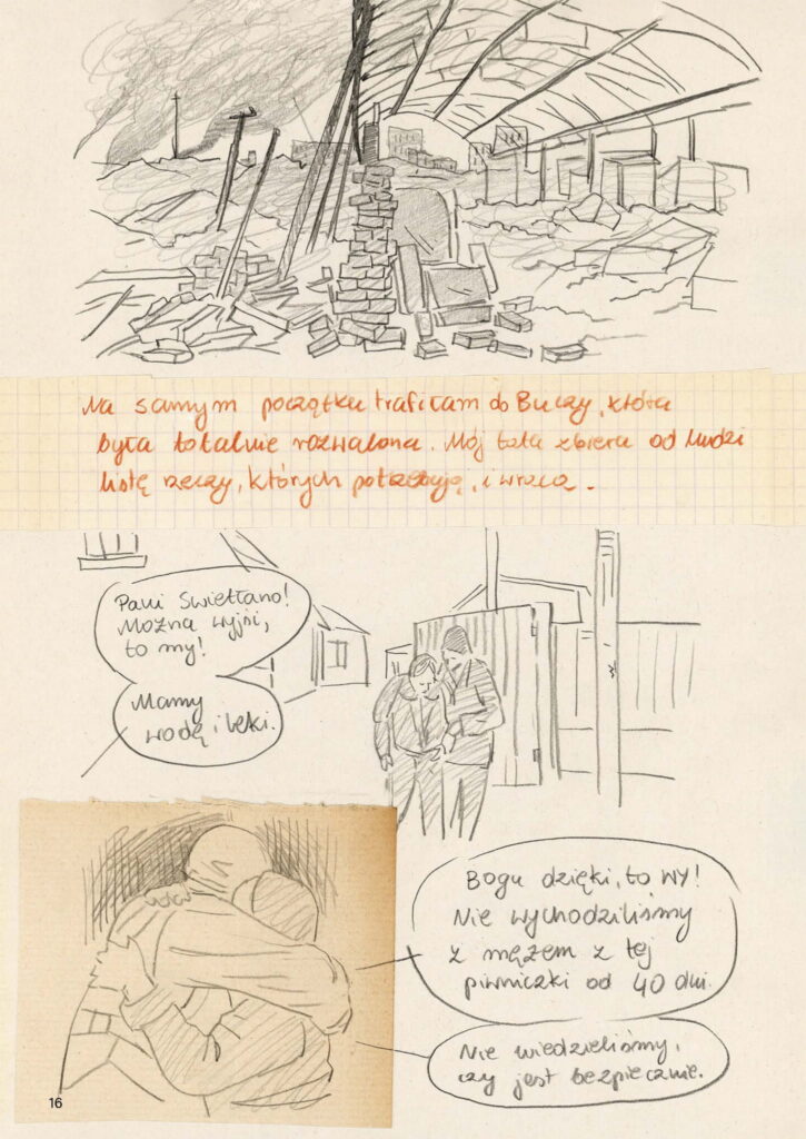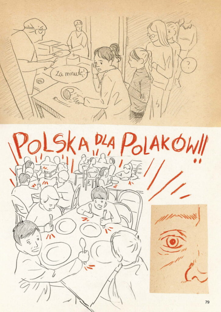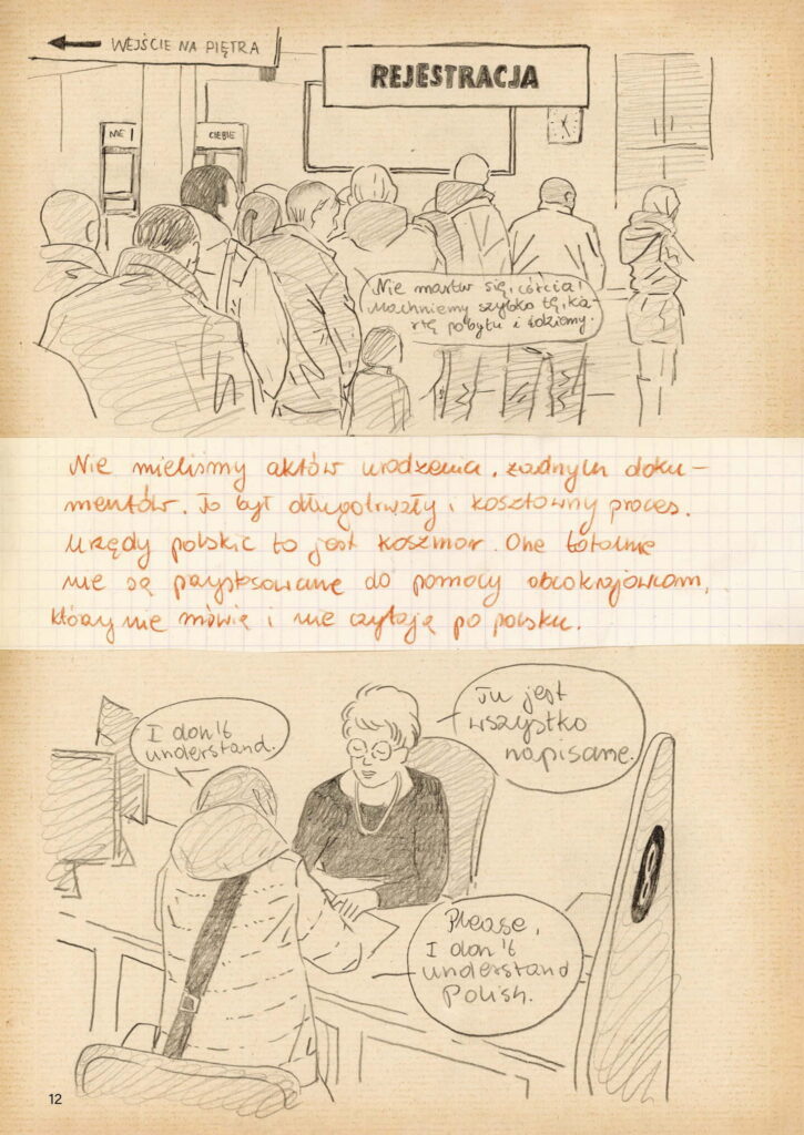 Pomysł, aby opowiedzieć o doświadczeniu migracyjnym i uchodźczym w formie komiksu, jest jednocześnie prosty i genialny. Styl Grety Samuel przypomina notatki terenowe sporządzane przez antropolożki i antropologów podczas badań terenowych – dynamiczne, bogate w etnograficzny szczegół, momentami chaotyczne, z których jednak wyłaniają się namacalne historie konkretnych ludzi: ich zmagań, wytrwałości, sprawczości, nadziei na dobre życie. Punktem wyjścia dla rysowniczki było jej własne doświadczenie migracyjne w Wielkiej Brytanii, w książce poznajemy jednak losy osób uchodźczych, które w Polsce znalazły nowy, bezpieczny dom: młodej Kandżu, wychowanej w koczowniczej rodzinie w okupowanym Tybecie, zaadoptowanej przez polskie małżeństwo, które potem pomagało na granicy polsko- białoruskiej i w Buczy; białoruskiej uchodźczyni Marii; algierskiego studenta odesskiego uniwersytetu, Housama, który trafił do Polski w następstwie pełnoskalowej wojny w Ukrainie; oraz Nadii, Ukrainki z Donbasu, z córeczkami, które uciekły już po pierwszej wojnie w 2014 roku. Towarzyszą im historie Sylwii i Ady, które wspierają osoby z doświadczeniem uchodźczym. – prof. UAM dra hab. Natalia Bloch