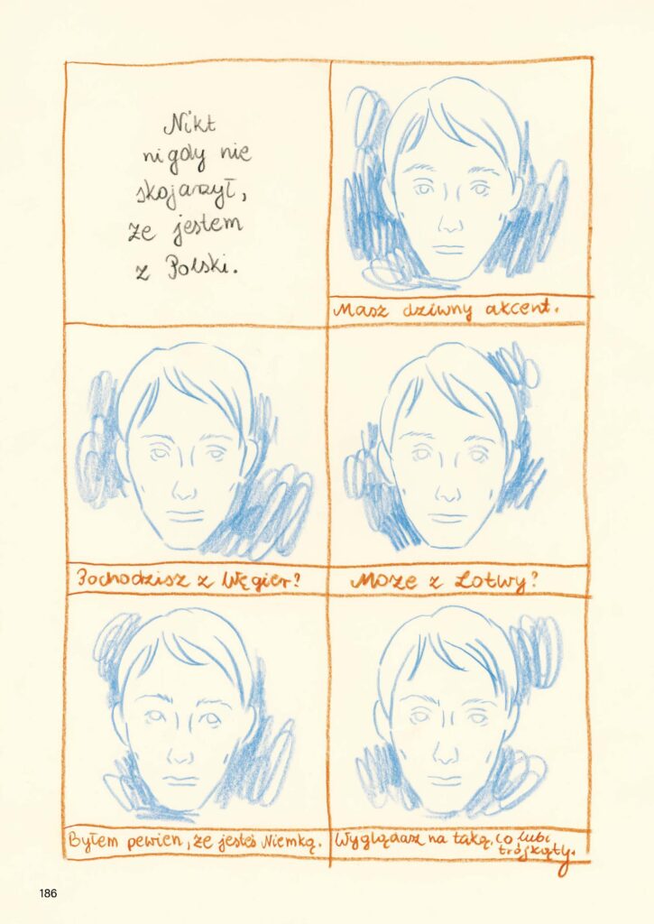 Debiut rysowniczki Grety Samuel, która w formule rysowanej relacji przedstawia kilka prawdziwych historii opowiedzianych jej przez migrantów mieszkających w Polsce. Punktem wyjścia dla autorki było jej własne doświadczenie migracyjne w Wielkiej Brytanii.