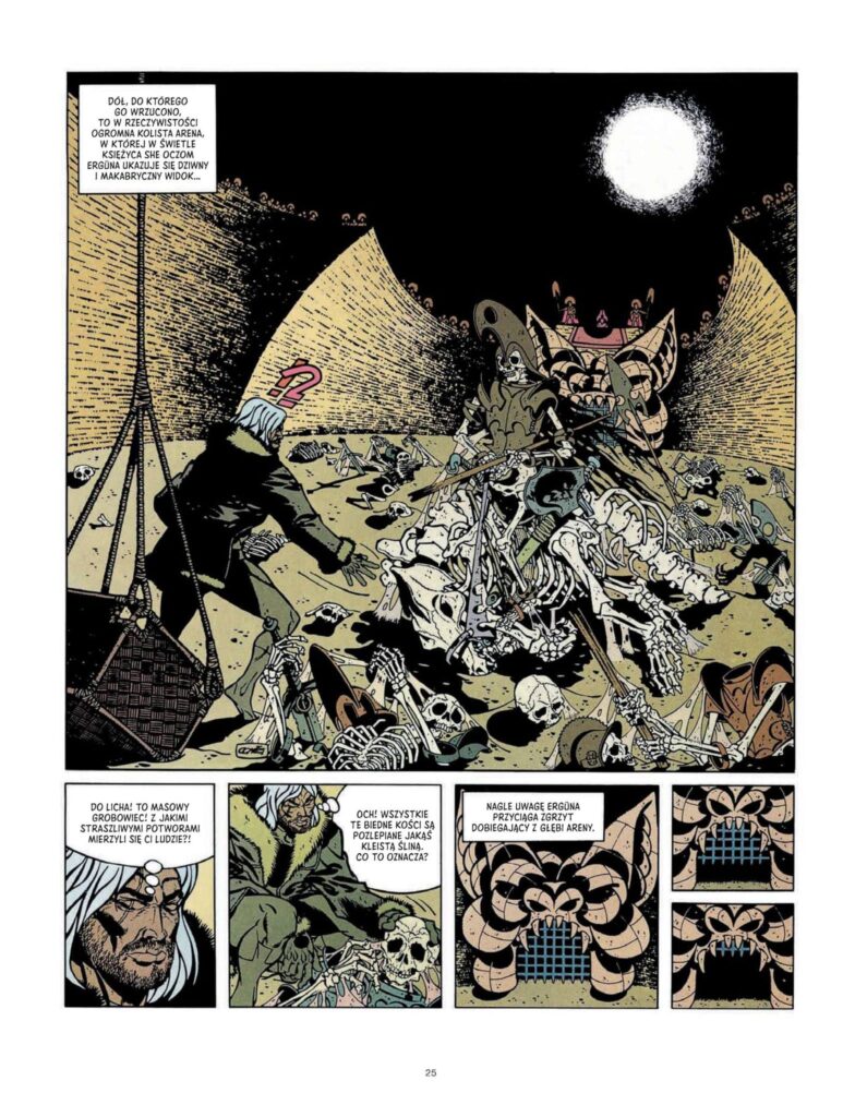 Ergün tułacz to zbiorcze wydanie „Żyjącego boga” i „Władcy ciemności”, dwóch pierwszych kolorowych historii Didiera Comèsa, jednego z klasyków frankofońskiego komiksu.