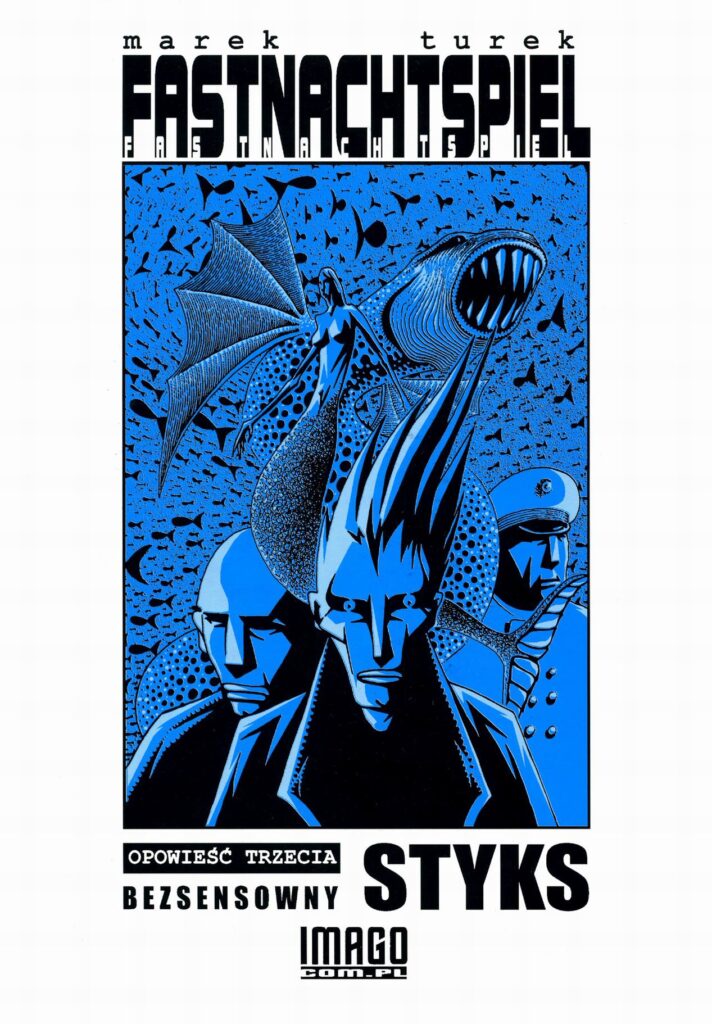 Bezsensowny Styks to trzecia część trylogii pt. Fastnachtspiel. Bohaterem tej opowieści jest apokaliptyczne miasto zamieszkałe przez demony, golemy, anioły i wampiry. Historie stworzone przez Marka Turka są mroczne i niepokojące. Łączy je postać Charona samotnie przemierzającego rzekę Styks. W tajemniczym mieście śmierć nie zbiera już swojego żniwa, ale czy jego mieszkańcy stali się przez to szczęśliwsi? W swoim poetyckim albumie Marek Turek zadaje podstawowe egzystencjonalne pytania. Z ekspresyjnych, syntetycznych kadrów autora wyłania się świat pełen lęku i cierpienia. Świat, który nikogo nie zostawia obojętnym.