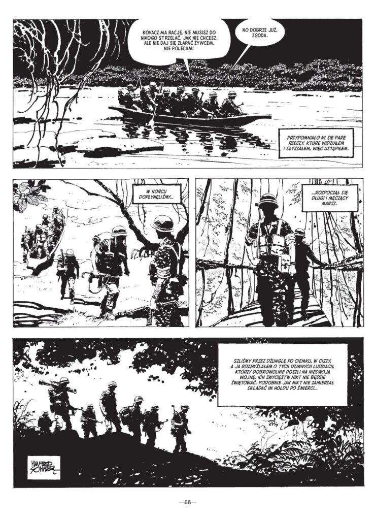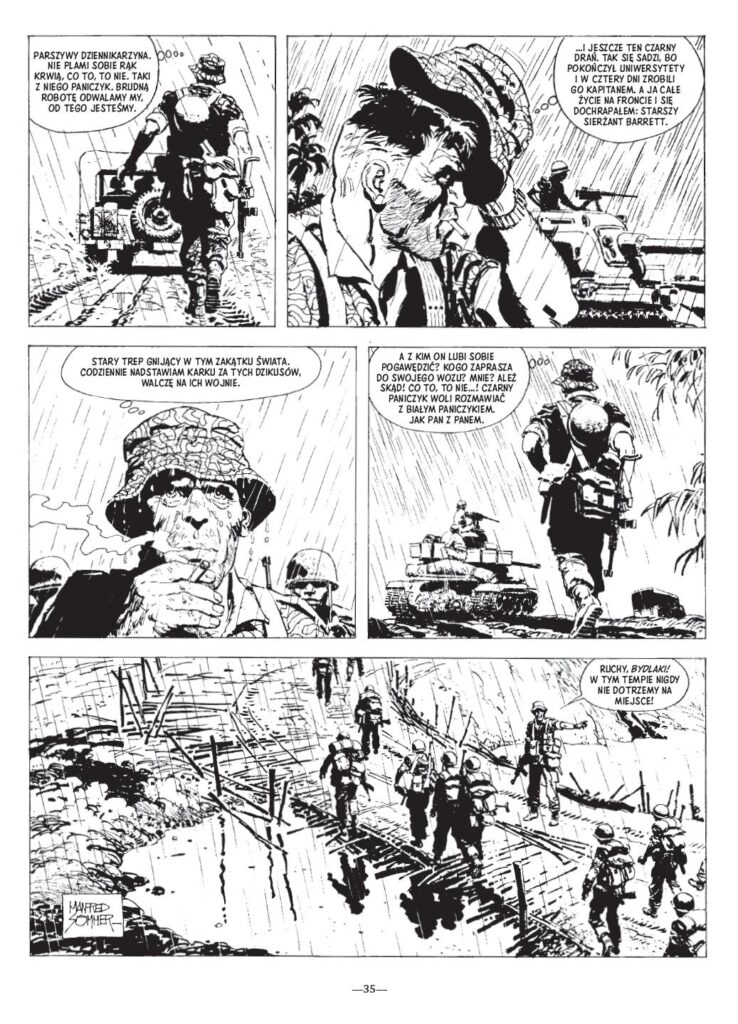 Nie sposób nie pokusić się tutaj o porównania z innym sławetnym (i niedawno wydanym w Polsce) albumem innego z tuzów komiksu, także mocno akcentującego antywojenny przekaz – „Erniem Pike’iem” Hugo Pratta. Tropy poniekąd słuszne, ale warto zwrócić uwagę na kluczowe różnice, jakie wyraźnie charakteryzują obydwa albumy. Pratt pisze w głównej mierze o okresie II wojny światowej, a więc o konflikcie, który z gruntu ma jasno określone strony i podział na dobrych i złych. I taki jest wydźwięk wspomnianych perypetii wojennych Erniego Pike’a. U Sommera teatrów wojennych jest więcej, cechuje ich przede wszystkim lokalność, ale też nie do końca możliwe do jednoznacznego określenia, po czyjej stronie w każdej z wojen stoi prawda. Każda ze stron ma swoje racje, swoje prawdy, swoje interesy. Każda potrafi dopuszczać się szlachetnych czynów, jak i najobrzydliwszych zbrodni, czy to w reakcji obronnej, czy to w akcie desperacji lub zemsty. Każda niesie ze sobą ofiary, po każdej ze stron.