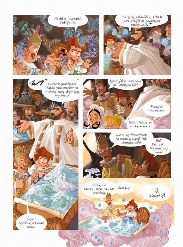 Czwarty tom przygodowo-fantastycznej opowieści dla młodych czytelników. Mały Grześ coraz częściej przenosi się w różne epoki, aby przemieniać dawnych magów w strażników portalu, których zadaniem jest ocalenie baśniowych istot przed złymi mocami. Jednocześnie chłopiec szkoli się na podróżnika czasu i poznaje nowe zaklęcia, co pozwala mu wychodzić obronną ręką z niebezpieczeństw, a tych nie brakuje, bo mroczne siły zyskują przewagę. Niestety wykonywanie tych wszystkich zadań sprawia, że Grzesiek ma kłopoty w normalnym życiu w naszych czasach…