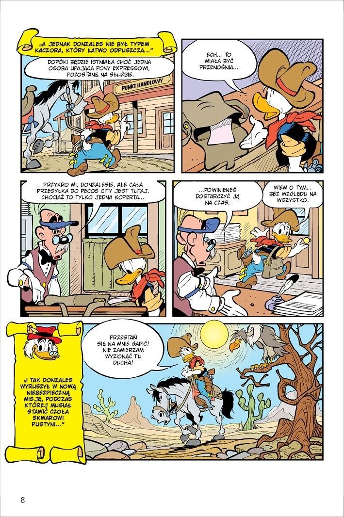 Kaczor Donald, wraz z siostrzeńcami – Dyziem, Hyziem i Zyziem – trafia na Dziki Zachód, gdzie kurz spod kopyt miesza się z zapachem przygody. Donald próbuje zostać kowbojem, ale jego porywczy charakter szybko wpędza całą paczkę w kłopoty. Jednak dzięki sprytowi, przyjaźni i odrobinie szczęścia udaje się im przechytrzyć bandytów. Dzisi Zachód jeszcze długo będzie wspominał kaczą ekipę, która zaprowadziła tam porządek po swojemu.
