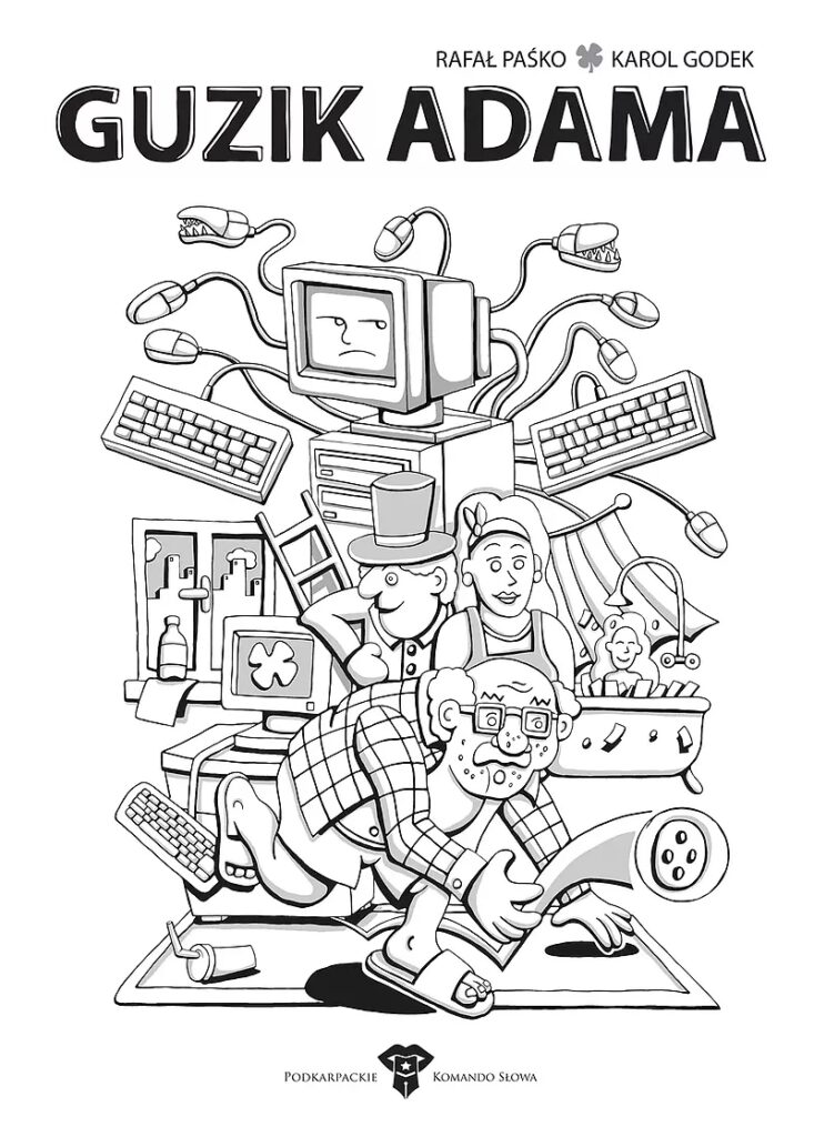 Mógłby mieć na imię Karol lub Rafał, ale ma na imię Adam. I podobnie jak ten rajski jest pierwszy, tyle że w programowaniu. Łapie chwile szczęścia, które kumuluje na przyszłość. „Szczęście mieści się w pamięci”, te słowa Oscara Wilde’a”, Adam potraktował dosłownie, ale kiedy pamięć RAM się przepełniła, chowa je w guziku od koszuli. A co ze „szczęściem w nieszczęściu” i czy „nieszczęścia chodzą parami” ? Tego dowiecie się z GUZIKA ADAMA.