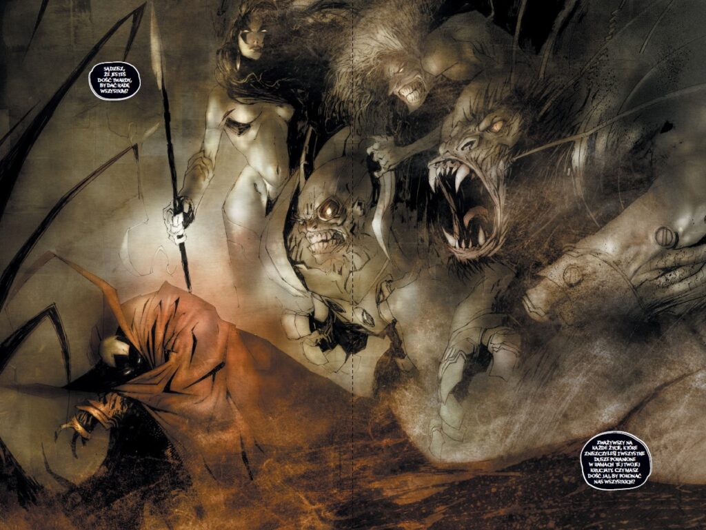 Hellspawn zabiera czytelnika do miejsca, w którym nigdy wcześniej nie byliśmy i do którego nikt nie chciałby trafić. Świat tego Spawna jest pełen podłych ludzi, którzy robią okropne rzeczy. Lęk, paranoja, depresja, psychopatia są tu wszechobecne. To nie jest kolorowy, komiksowy świat. Obrazy są tu równie niepokojące i szalone, jak scenariusz.