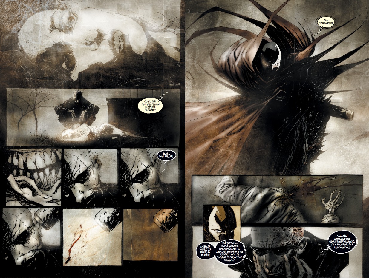 Hellspawn zabiera czytelnika do miejsca, w którym nigdy wcześniej nie byliśmy i do którego nikt nie chciałby trafić. Świat tego Spawna jest pełen podłych ludzi, którzy robią okropne rzeczy. Lęk, paranoja, depresja, psychopatia są tu wszechobecne. To nie jest kolorowy, komiksowy świat. Obrazy są tu równie niepokojące i szalone, jak scenariusz.