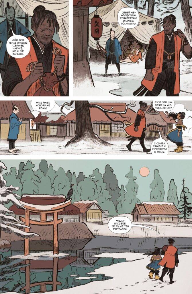 Komiks ten łączy historyczny dryg oraz elegancję Kurosawy z emocjonującą i brutalną akcją w stylu Tarantina, opowiadając o trudach i udrękach przemierzającej prowincję młodej wojowniczki, nieustającej w próbach zdobycia tytułu samuraja, który musi wywalczyć sobie sama.