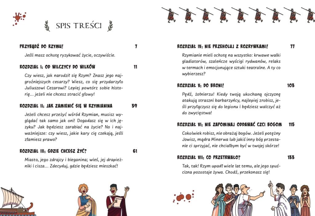 Na szczęście dzięki temu wyjątkowemu podręcznikowi przetrwania dowiesz się wszystkiego o Rzymianach i być może… choć tylko być może… uda ci się opuścić starożytny Rzym w jednym kawałku!