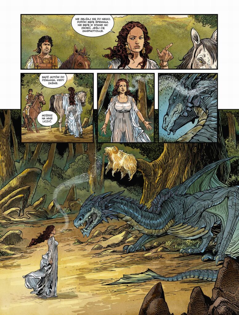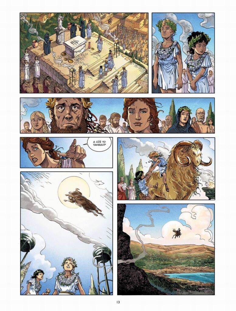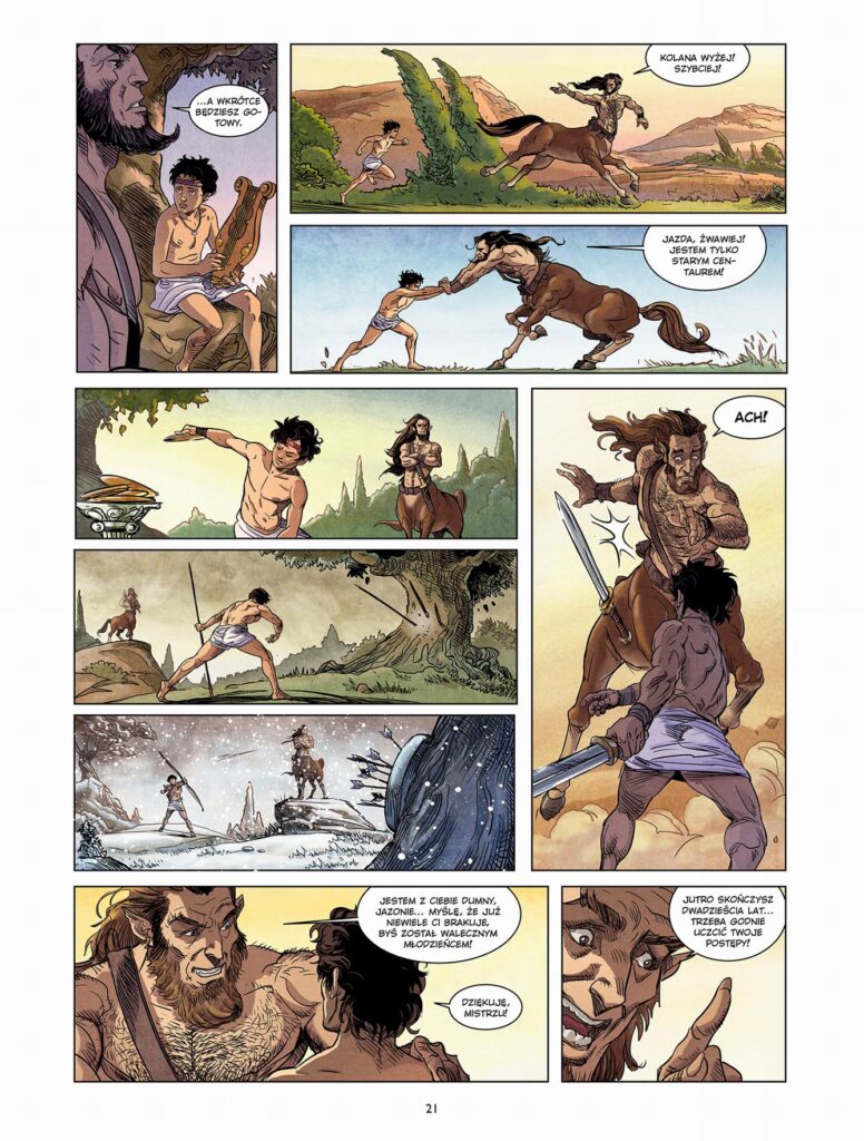 Doskonała komiksowa adaptacja jednego z najbardziej znanych greckich mitów – wyprawy Jazona po złote runo. Prawowity następca tronu królestwa Jolkos, mały Jazon, jako jedyny przeżył masakrę dokonaną na jego braciach przez wuja, zdrajcę Peliasa. Ukryty przez matkę, dorastał z daleka od ludzi, wychowywany i kształcony przez najlepszego nauczyciela w Grecji – centaura Chirona, który uczył go i muzyki, medycyny, sztuki wojennej… Dopiero po osiągnięciu pełnoletności Jazon dowiaduje się prawdy o swoim pochodzeniu i opuszcza mentora, by wypełnić przeznaczenie. Ale wpadłszy w pułapkę zastawioną przez wuja, władającego królestwem, jest zmuszony podjąć się wyjątkowo niebezpiecznej misji, by zdobyć złote runo, skarb tyleż bezcenny, ile niedostępny…