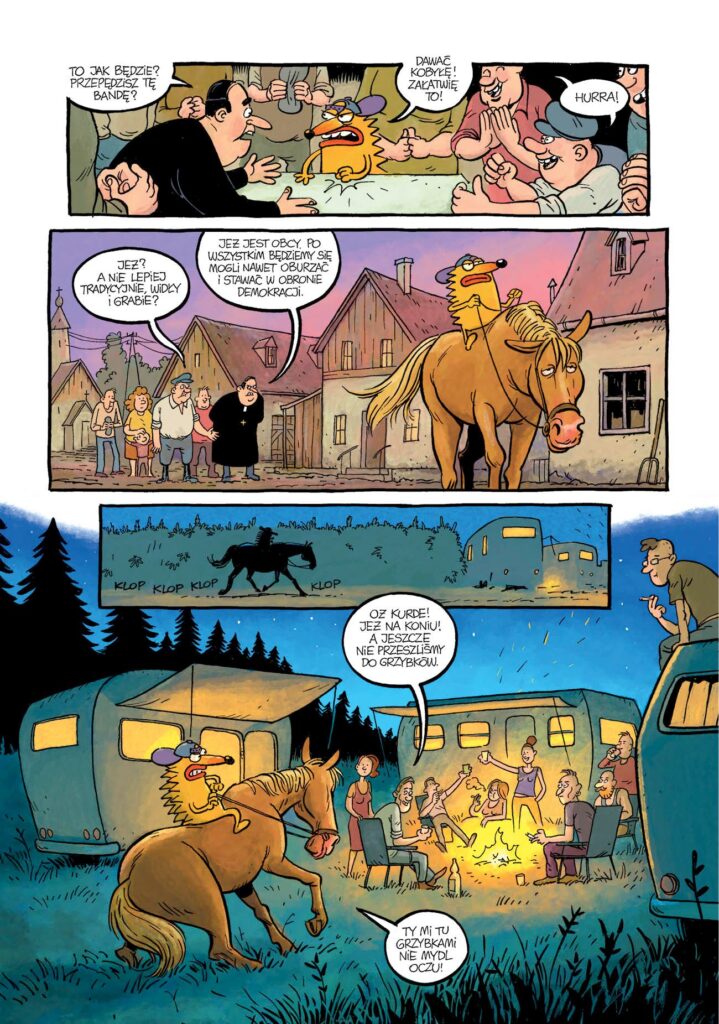 Rafał Skarżycki i Tomasz Lew Leśniak, ojcowie słynnego kolczastego bohatera, po raz kolejny bawią się konwencjami i nawiązaniami – od westernu po reality show – ale też oczekiwaniami czytelników!
