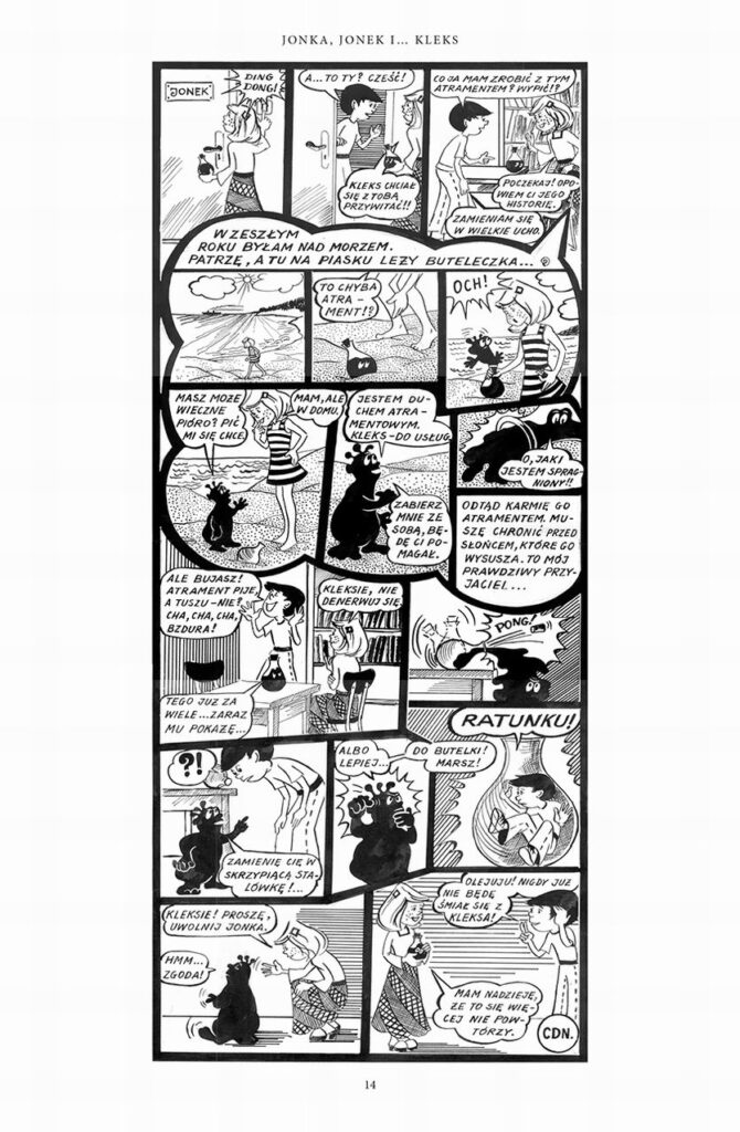 Przygody Jonki, Jonka i Kleksa to klasyka polskiego komiksu dziecięcego autorstwa Szarloty Pawel. Wesołe, pełne fantazji i groteski historyjki ukazywały się od lat 70. do 90. XX wieku na łamach popularnego pisma „Świat Młodych”, a także w wydaniach albumowych. Jonka i Jonek, wychowywani wśród peerelowskich bloków, dzięki Kleksowi odrywają się od codziennej rutyny i wkraczają do krainy fantazji i marzeń. Przypominamy czytelnikom sympatycznych bohaterów i ich świat, którego granice wyznacza tylko wyobraźnia.