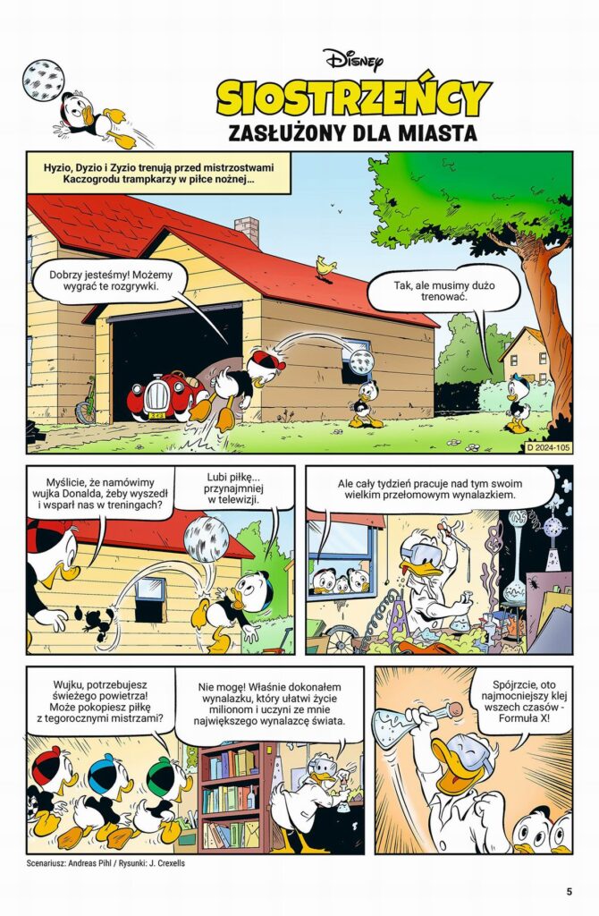 Hyzio, Dyzio i Zyzio trenują przed turniejem piłkarskim i bardzo chcą być w dobrej formie. Niestety, Donald ma inne plany i siostrzeńcy muszą się trzymać swojego wujka jak przyklejeni… niemalże dosłownie! To naprawdę śliska… a raczej lepka sytuacja!