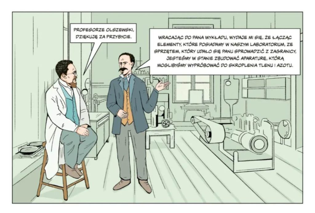 Poznaj niezwykłą historię Karola Olszewskiego, wybitnego polskiego naukowca, który jako pierwszy na świecie, wspólnie z Zygmuntem Wróblewskim, skroplił trwałe gazy, takie jak tlen i azot. Odkryj komiks, który przeniesie Cię w fascynujący świat przełomowych odkryć i eksperymentów, mających ogromne znaczenie dla rozwoju kriogeniki. Dzięki niezwykłej oprawie graficznej oraz starannie opracowanemu scenariuszowi, ta publikacja jest pełna naukowej pasji i emocji. To lektura, która inspiruje do odkrywania nieznanych obszarów nauki!