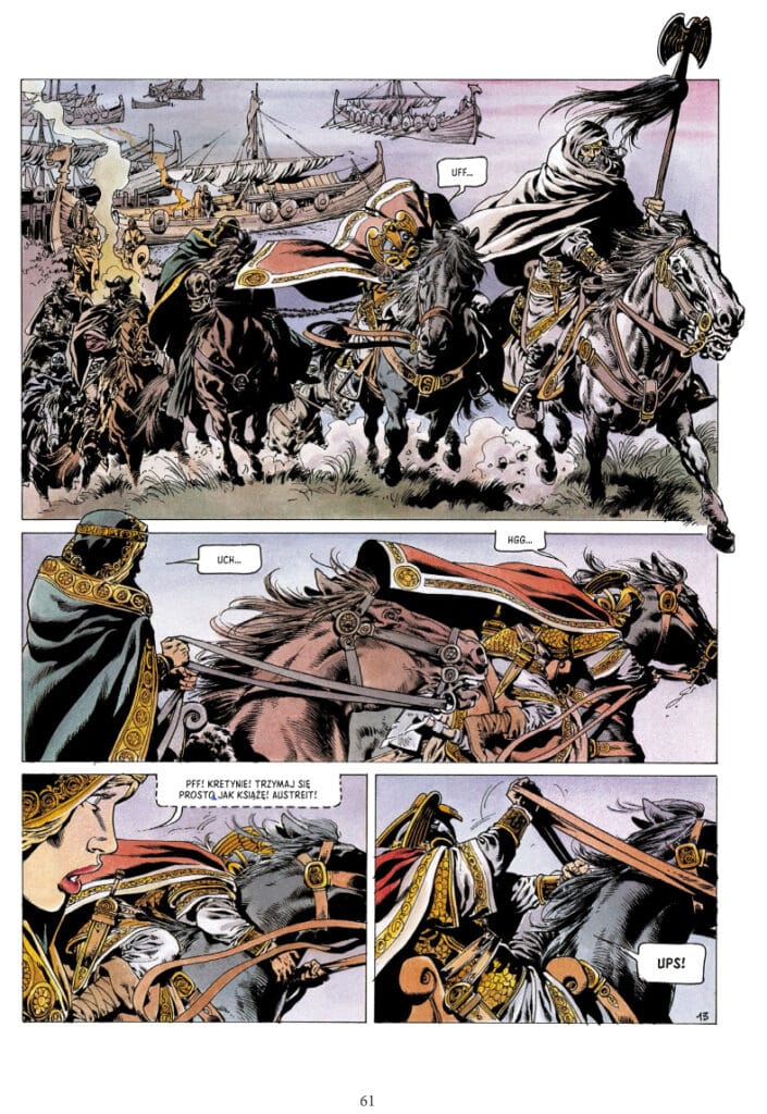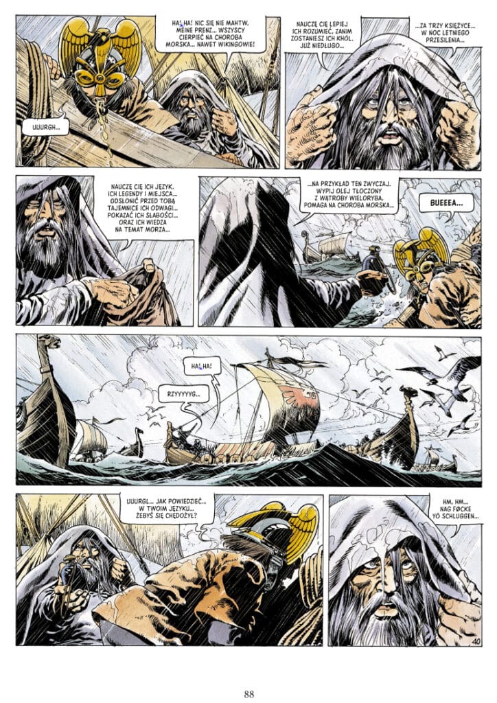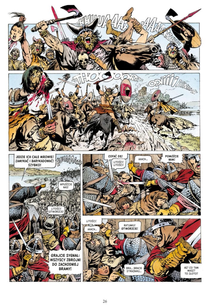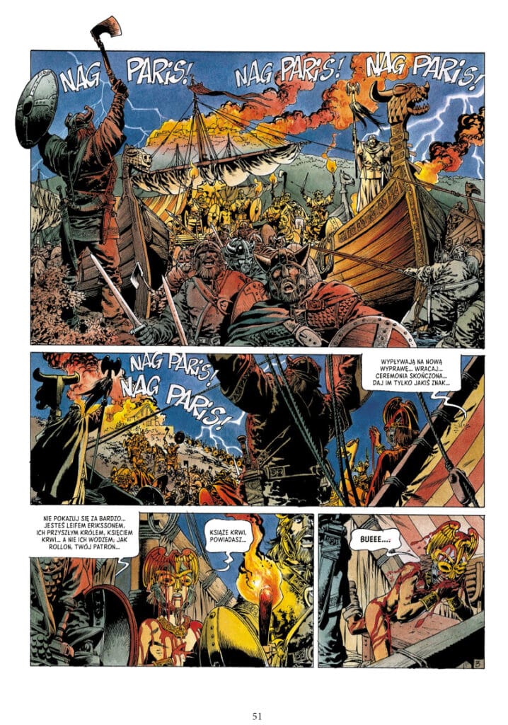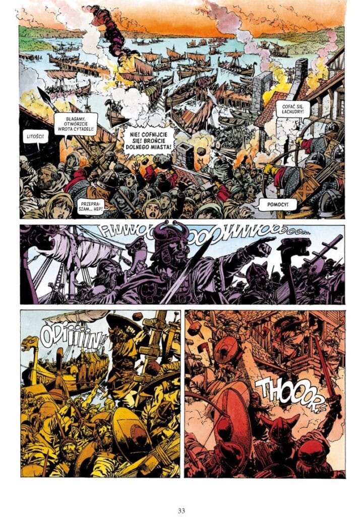 „Kroniki barbarzyńców” to absolutnie kultowe dzieło komiksu europejskiego, ale również debiut na polskim rynku mistrza realistycznej kreski, Jeana-Yves’a Mittona. Autor zasłynął z odważnych i bezkompromisowych historii, inspirowanych prawdziwymi wydarzeniami historycznymi. „Kroniki” zabierają nas do świata wikingów – brutalnego, okrutnego oraz przepełnionego gwałtami. Zapomnijcie o wygładzonej przez popkulturę i seriale wizji tych wojowników. Przygotujcie się natomiast na opętańczy, bitewny szał, który niszczy wszystko na swej drodze.