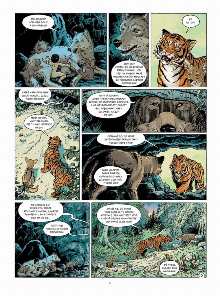 Znana na całym świecie „Księga dżungli” Rudyarda Kiplinga to zbiór opowiadań dotyczących Indii – ich mieszkańców, wierzeń i folkloru. Trzy z nich opowiadają dzieje Mowgliego, hinduskiego chłopca wychowywanego przez dzikie zwierzęta. Jako dziecko Mowgli zgubił się w dżungli i został przygarnięty przez parę wilków oraz przyjęty do wilczej gromady – wbrew protestowi tygrysa Shere Khana, który uważał chłopca za swoją zdobycz. Dzięki naukom niedźwiedzia Baloo i czarnej pantery Bagheery Mowgli dowiedział się, jak żyć w zgodzie z prawami dżungli, i poznał język różnych zwierząt. Jednak tygrys nigdy nie zrezygnował ze swoich roszczeń i ostatecznie musiało dojść do konfrontacji między człowiekiem a dzikim zwierzęciem.