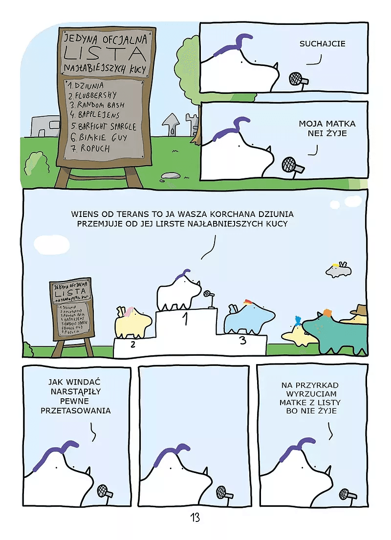 To pierwszy zeszyt z Demlandu wydany całkowicie w kolorze i jeszcze na grubym, kredowym papierze. W środku poza historią znajduje się także link do ścieżki dialogowej, żeby nie trzeba było się zdawać na wyobraźnię, próbując odtworzyć charakterystyczne głosy koników.
