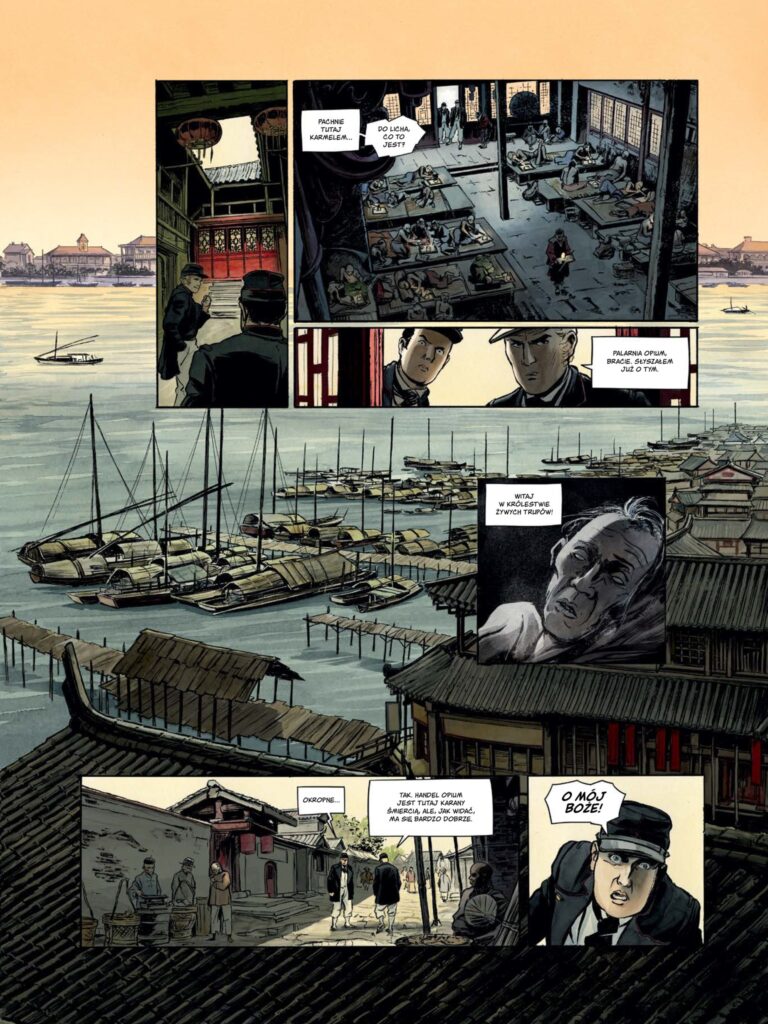 Po przybyciu do koncesji francuskiej w Szanghaju francuski żołnierz odkrywa, że za politycznymi i dyplomatycznymi motywami tej wojny kryje się dużo mniej szlachetna pobudka: handel opium na terytorium Chin. LF Bollée, Alcante („Bomba”) i Xavier Besse zabierają nas w wielką i egzotyczną przygodę, podczas której poznajemy silnych i zdeterminowanych bohaterów.