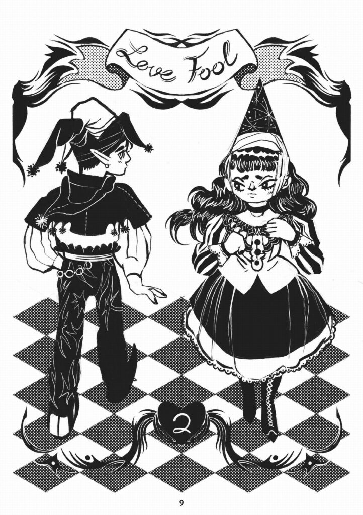 Love Fool to komiks o pożądaniu, grze pozorów i trudnych wyborach. Inspirowany mitami arturiańskimi, romansem dworskim i Commedią dell’arte, przeszyty queerowymi wątkami. Komiks +18.