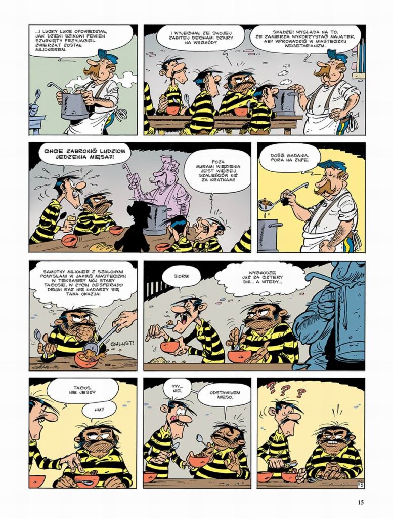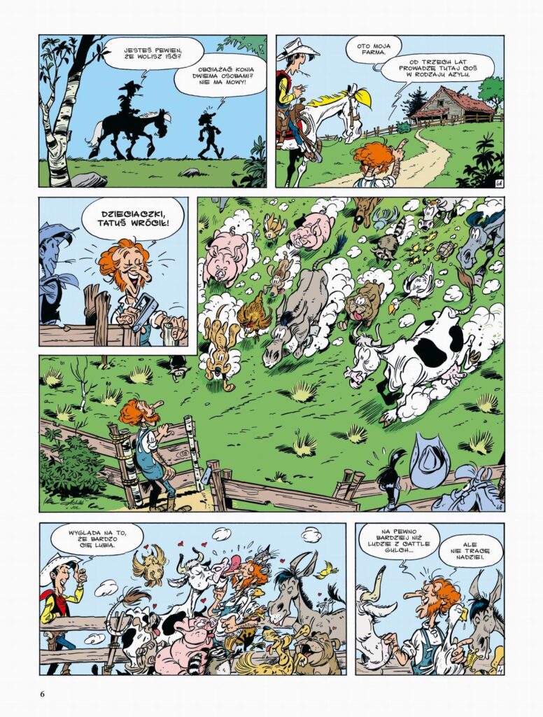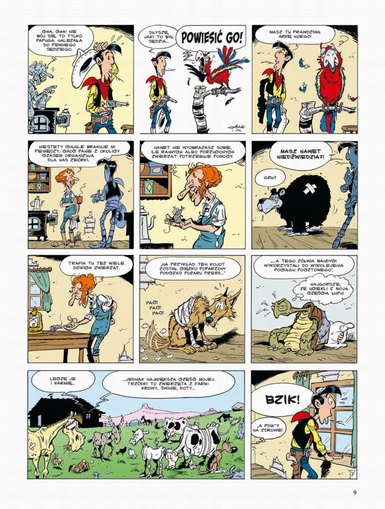 Najnowszy album o przygodach komiksowej legendy Dzikiego Zachodu! Owidiusz Byrde prowadzi azyl dla chorych i bezpańskich psów, kotów, kojotów, krów… Niestety brakuje mu pieniędzy, a na dodatek widzi, że mieszkańcy Dzikiego Zachodu nie przejmują się losem biednych zwierząt. Za sprawą niespodziewanego odkrycia dokonanego przez Bzika zmienia się finansowa sytuacja Byrde’a, co postanawia wykorzystać podstępny rewolwerowiec Tacos. Czy Lucky Luke zdoła zapanować nad chaosem rozpętanym przez naiwnego przyjaciela zwierząt i sprytnego złoczyńcę?