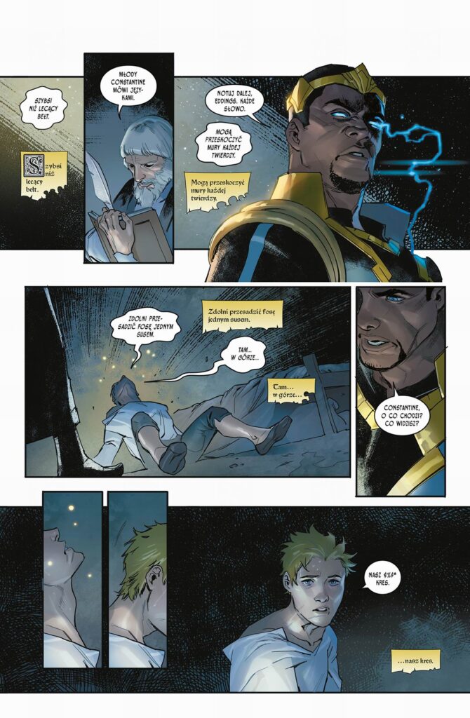W niniejszym komiksie z gatunku fantasy (magia i miecz też pasuje), z zaciekawieniem podglądamy jak pewne motywy zmieniają się i ewoluują w innych okolicznościach (np. w tym przypadku na Ziemi w kapsule ląduje dwójka rodziców Supermana) i jak sobie radzą twórcy komplikując swoim bohaterom życie. Wszystko w komiksie ze scenariuszem Toma Taylora (znanego z innych elseworldów - “Injustice” i “DCeased”) zaczyna się od przepowiedni młodego maga, Johna Constantine'a.