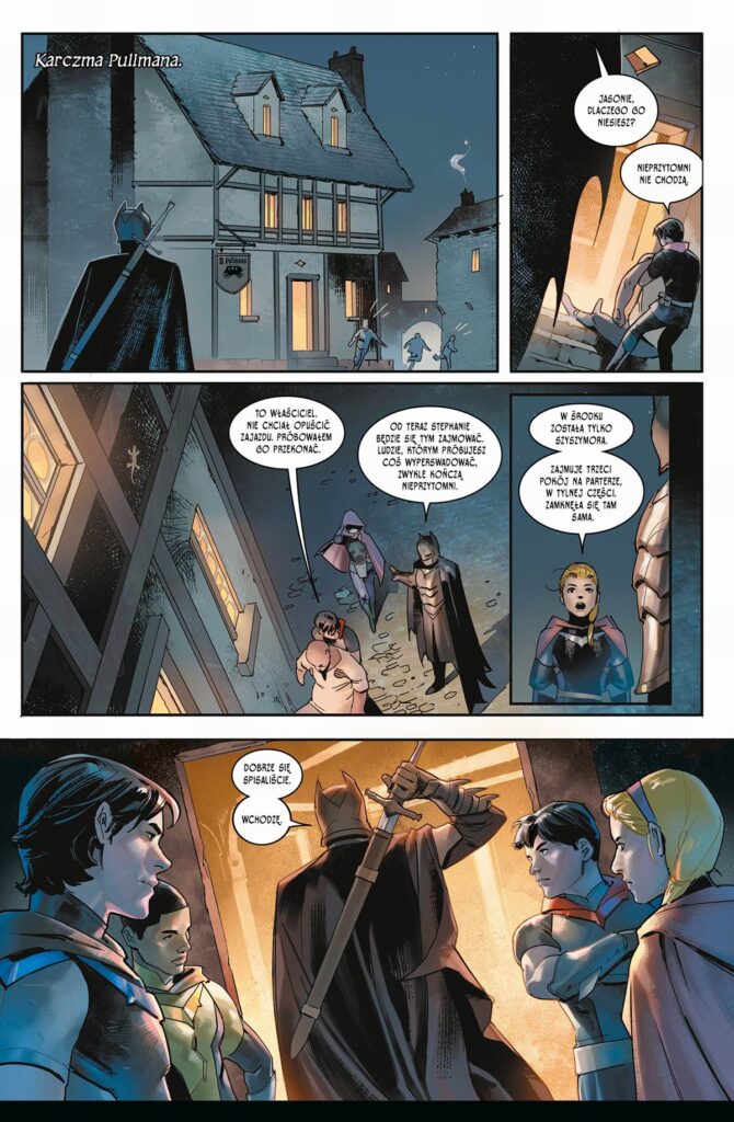 Z każdym zeszytem konflikt coraz bardziej się zaognia, a Tom Taylor raz za razem wyciąga nowe fabularne asy z rękawa. Aż w końcu człowiekowi przychodzi na myśl, że jest w tym coś automatycznego, jakby scenarzysta odhaczał kolejną rzecz wrzuconą do fabuły i czekał na poklask. I mimo, że naprawdę jest fajnie, rysunki mają w sobie urok i ich estetyka świadomie ucieka od współczesnej warstwy graficznej w DC, to w jakimś momencie pojawia się przeświadczenie, że nie tak to powinno wyglądać, nie tak to powinno wybrzmiewać. Jakby zarówno w DC i w Marvelu twórcy tworząc elsworldy nieustannie tasowali karty, proponowali coraz to nowe rozdania, ale rzecz w tym , że karty są wciąż te same, mimo że tworzą między sobą różne układy. I w końcu nadchodzi ten moment, że mamy dość tej gry i zaczynamy szukać innej.