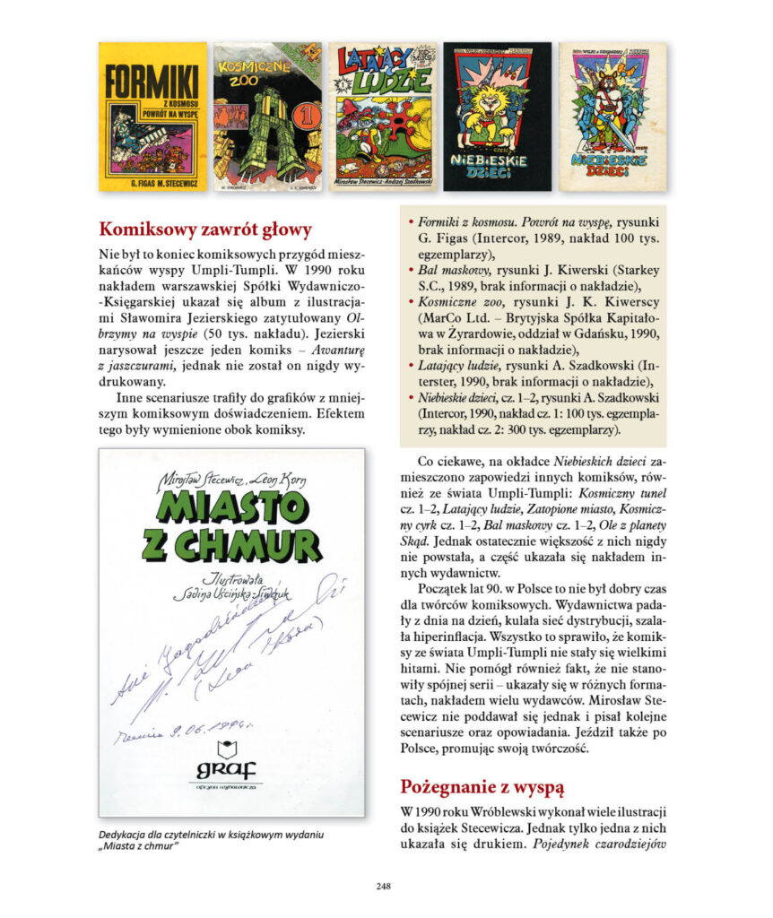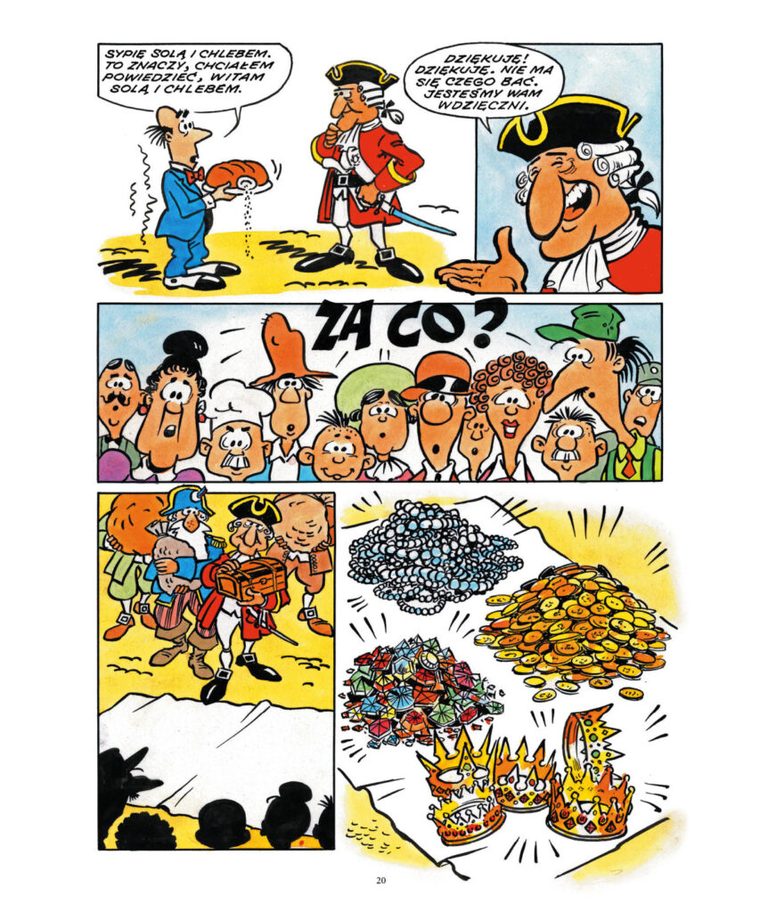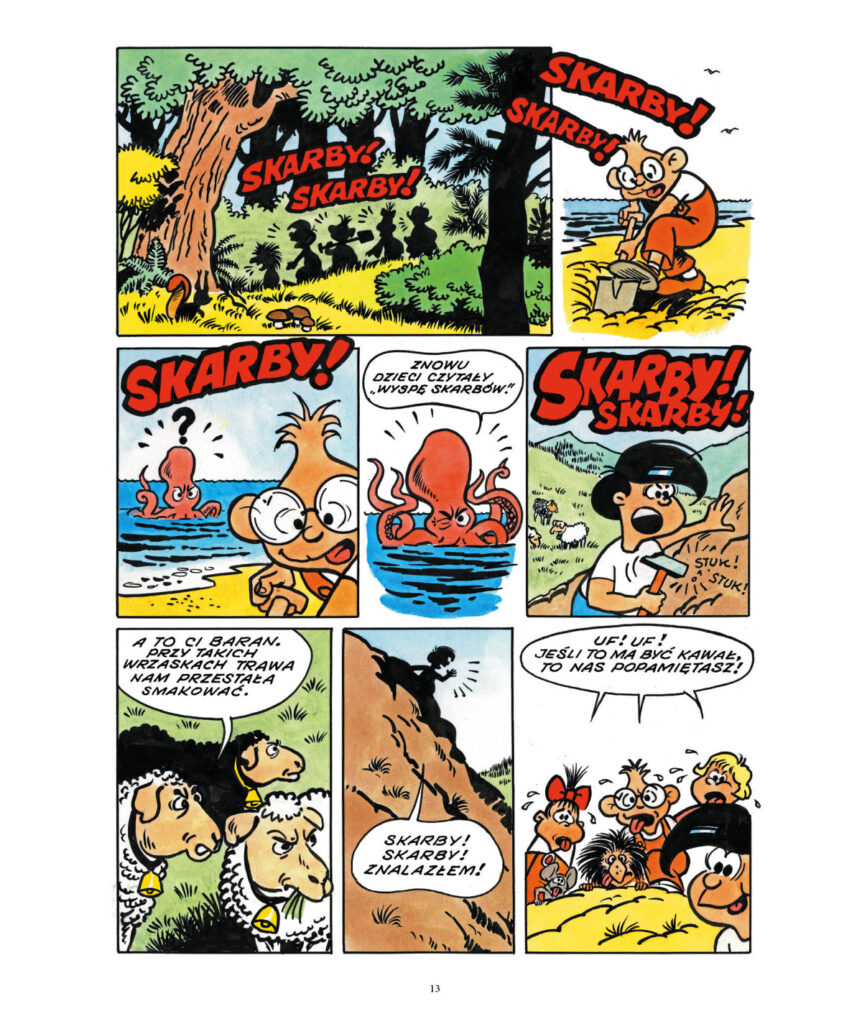 W niniejszym tomie znajdują się komiksy „Nowa wyspa skarbów”, „Miasto z chmur”, „Kupcy z kosmosu”, „Umple-Tumple Comics Colour”, a także ilustracje z książeczki „Pojedynek czarodziejów” oraz tekst o historii całej serii autorstwa Macieja Jasińskiego.