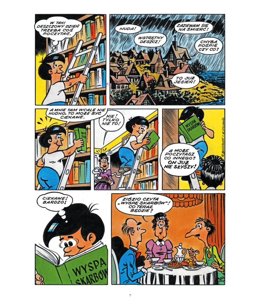 To historia o potędze dziecięcej wyobraźni i inspirującej roli literatury. Mamy w tych komiksach tajemniczą mapę, poszukiwanie skarbu, duchy piratów z Latającego Holendra, odrobinę magii, miasto z chmur i kosmiczne ekspedycje – wszystko to połączone we wciągającą i zabawną fabułę z dziecięcymi bohaterami, do których Wróblewski stworzył doskonałe ilustracje.