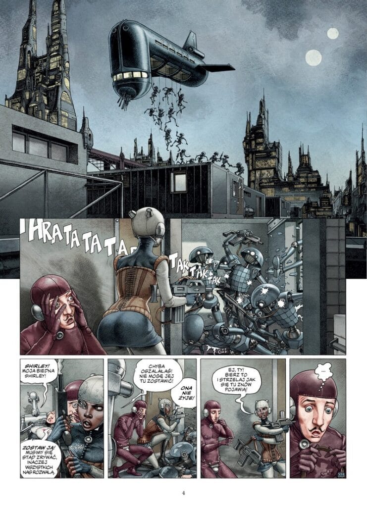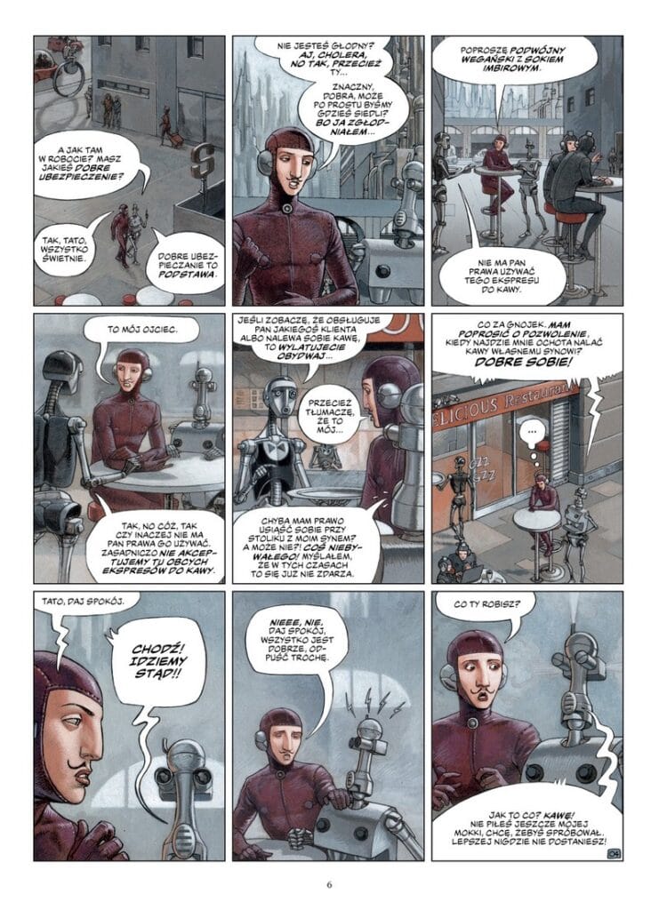 Retrofuturystyczna, ale nowoczesna opowieść zilustrowana przez Freda Beltrana (Technokapłani, Megalex) odzwierciedla problemy współczesnego świata, przywołuje klasykę dystopijnej SF, film 12 małp Gilliama, powieść 451 stopni Fahrenheita Brabdury’ego czy cykl Roboty Asimova.