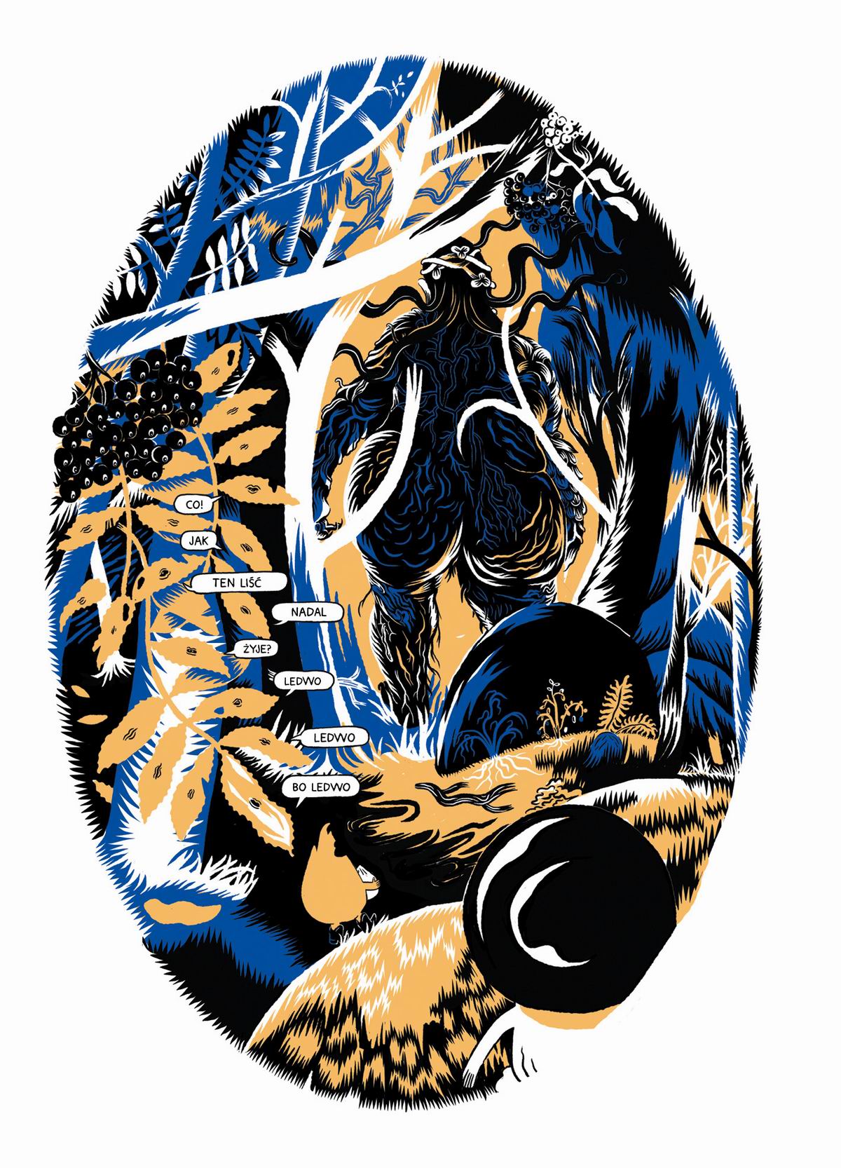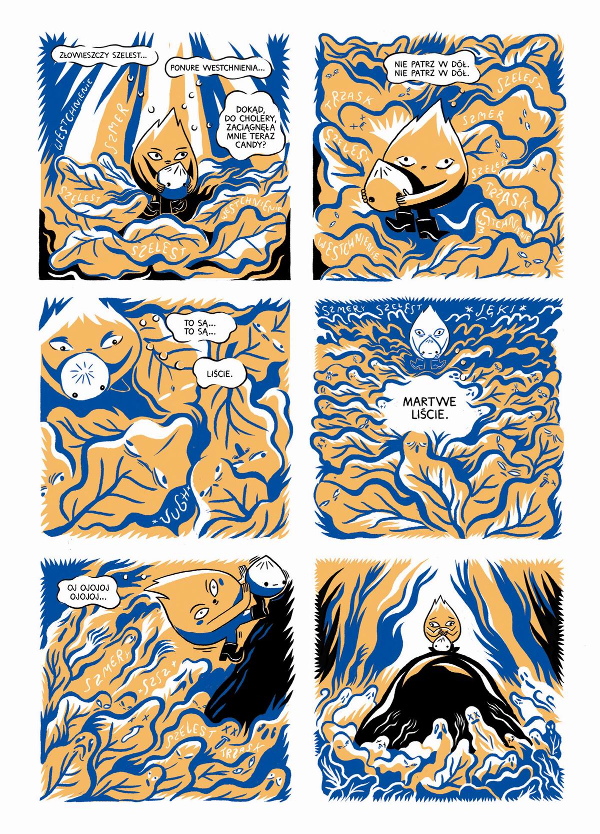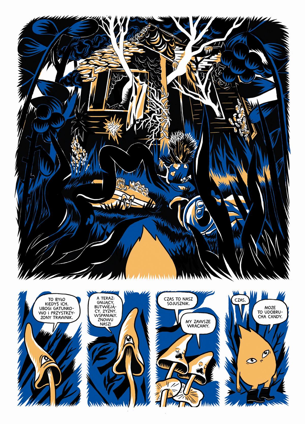 Nastała jesień, wszystkie liście wyruszają w swoją najważniejszą podróż, ale jeden z nich, Björk, gubi się tuż po odlocie. Tak mogłaby się skończyć jego wielka przygoda, ale tym razem to dopiero jej początek! Spotka bowiem na swojej drodze zrozpaczonego po zawodzie miłosnym podgrzybka Candy i mroczną, cuchnącą boginkę Gun, a trasę wyznaczy mu odpowiednio zsieciowana grzybnia. Odkryje, że po starym lesie zostało puste pole, zaraz obok wyrosła armia zwodniczych świerków, a grzyby oszalały na punkcie roztaczającej wizje lepszego życia Kombuczy, kapłanki wellness.