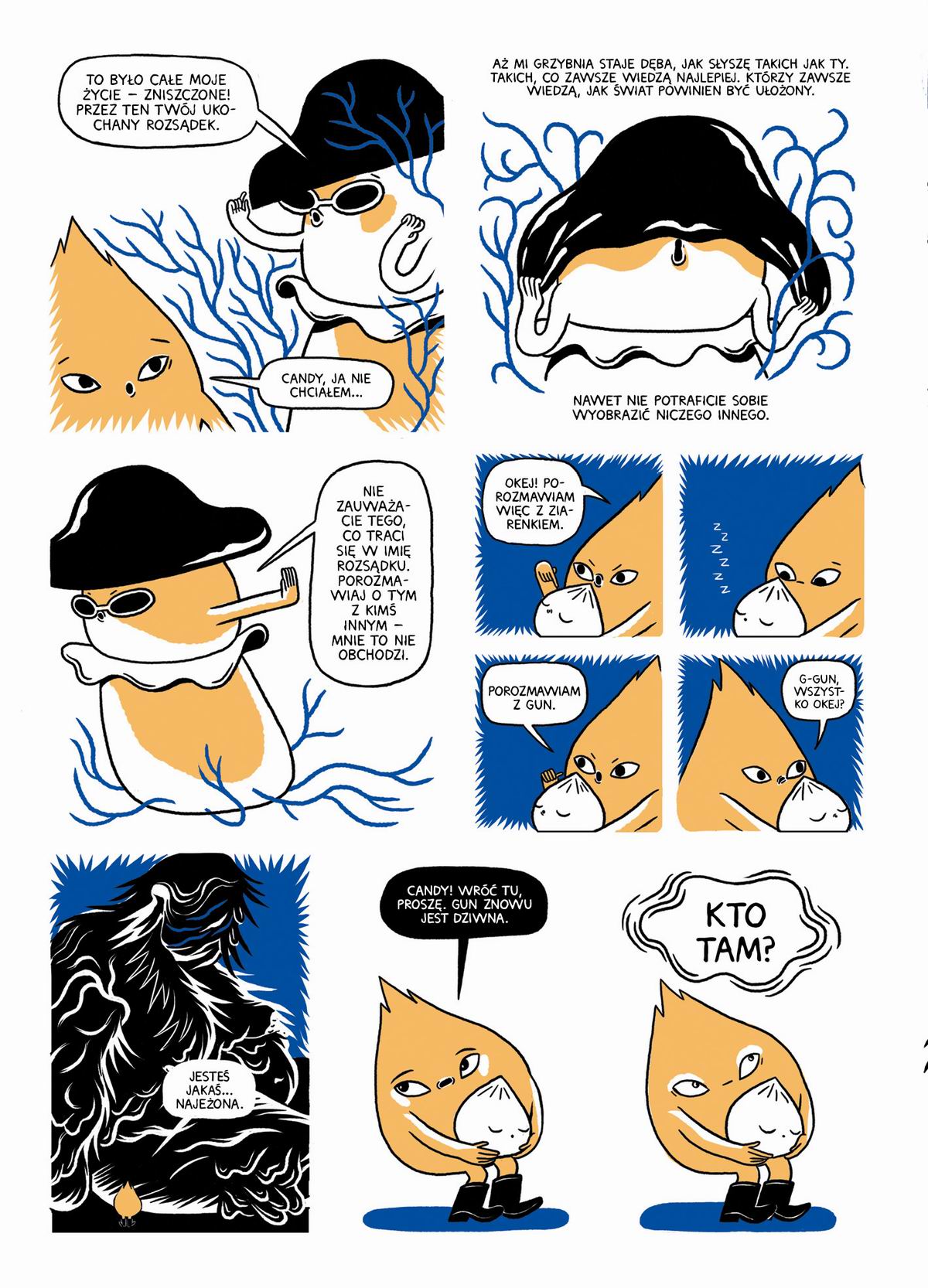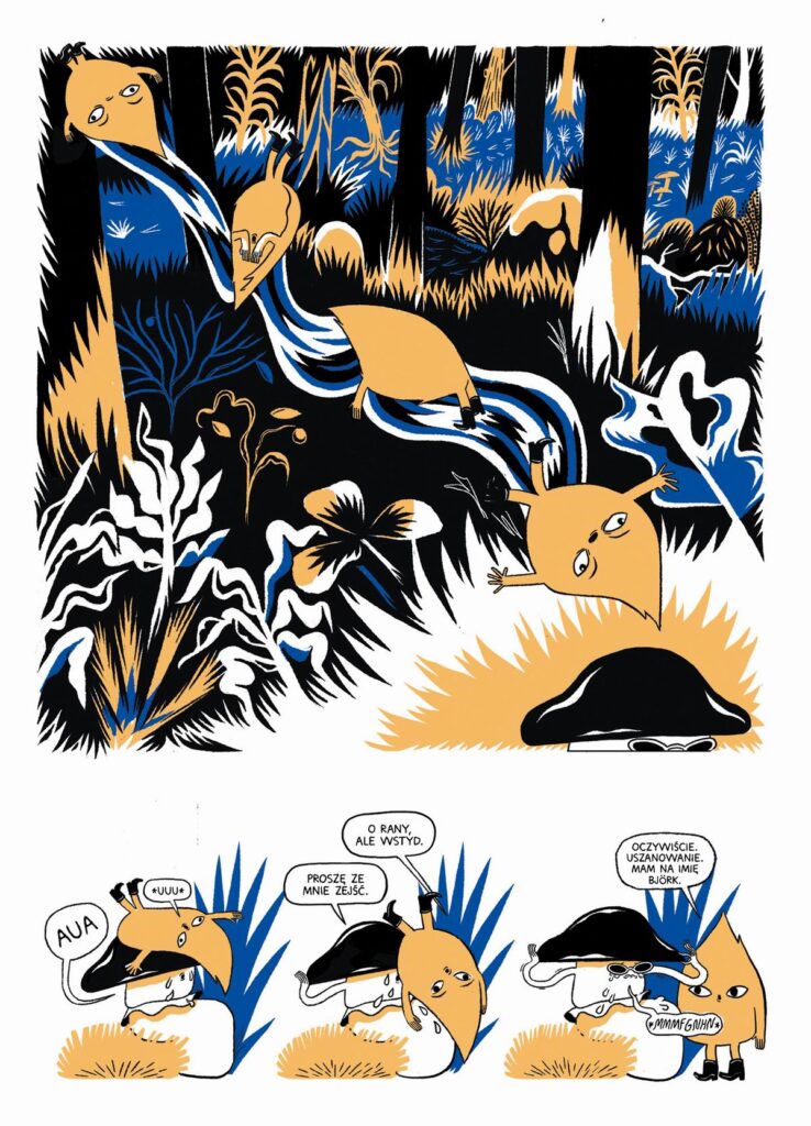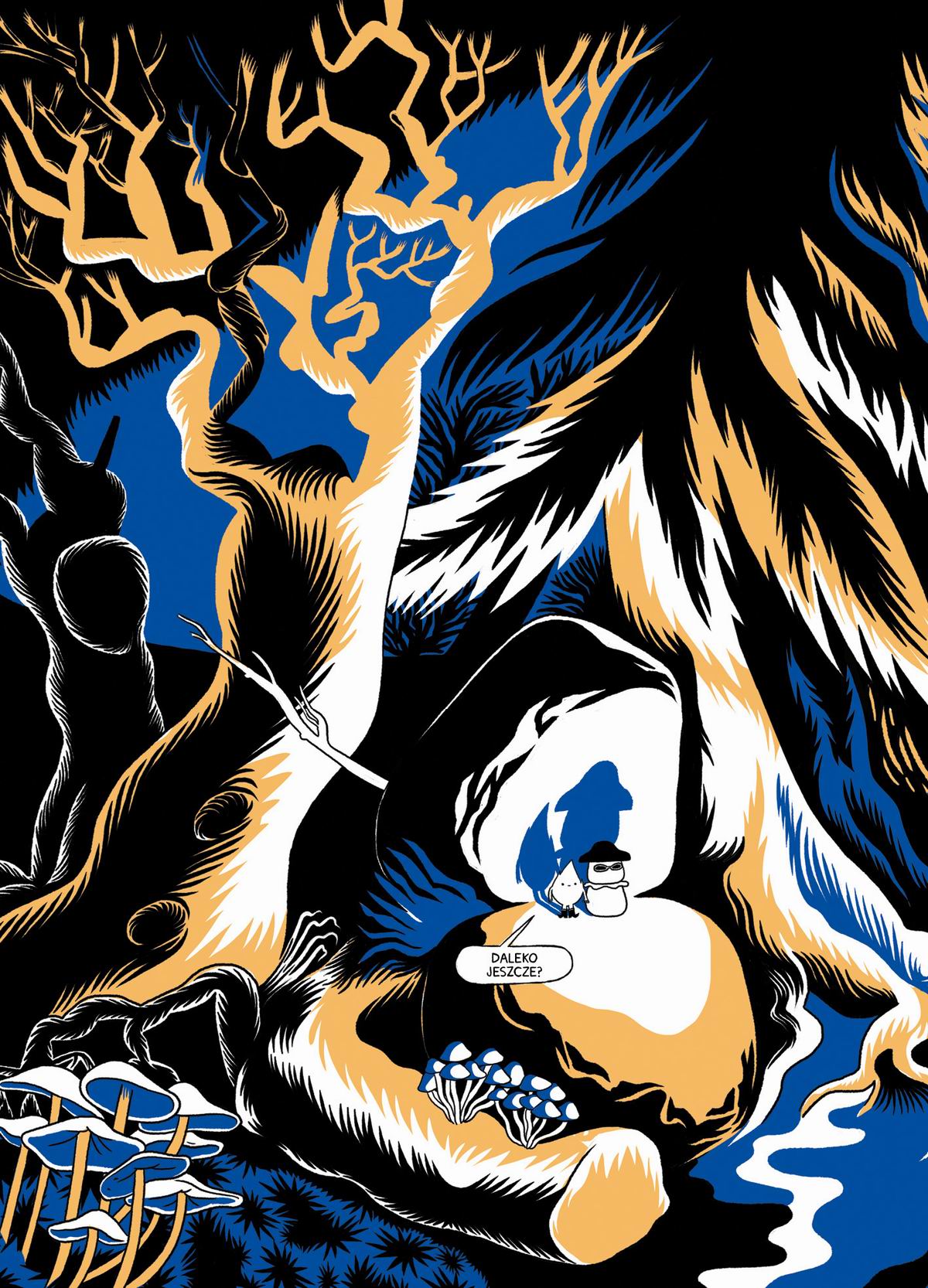 Nastała jesień, wszystkie liście wyruszają w swoją najważniejszą podróż, ale jeden z nich, Björk, gubi się tuż po odlocie. Tak mogłaby się skończyć jego wielka przygoda, ale tym razem to dopiero jej początek! Spotka bowiem na swojej drodze zrozpaczonego po zawodzie miłosnym podgrzybka Candy i mroczną, cuchnącą boginkę Gun, a trasę wyznaczy mu odpowiednio zsieciowana grzybnia. Odkryje, że po starym lesie zostało puste pole, zaraz obok wyrosła armia zwodniczych świerków, a grzyby oszalały na punkcie roztaczającej wizje lepszego życia Kombuczy, kapłanki wellness.
