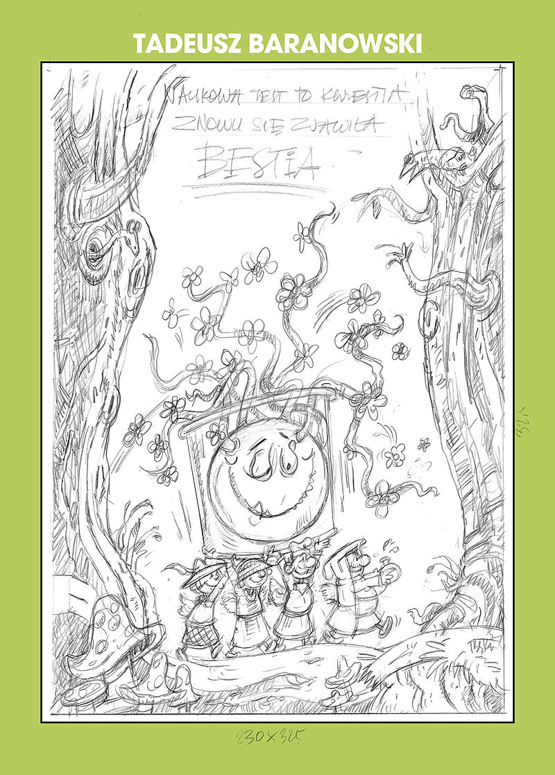 Szkice do albumu „Naukowa to jest kwestia, znowu się zjawiła bestia”zebrane w postaci zeszytu.