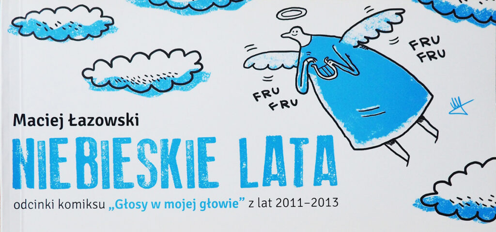 „Niebieskie lata” to zbiór niebieskich (oczywiście) pasków komiksowych z serii „Głosy w mojej głowie” autorstwa Macieja Łazowskiego („Bug City”, „Hell Hotel”, „Co Się Dzieje Kiedy Śpisz”). Komiksy publikowane były w latach 2011 – 2013 na stronie www.glosywmojejglowie.pl (choć kilka z nich trafiło m.in. do „Przekroju”). Bezrobotne roboty, poirytowani bogowie czy depresyjne chomiki to jedne z wielu postaci, na jakie można się natknąć na kartach tego zbiorczego albumu. Oprócz znanych i lubianych żartów zawiera on także nowe, wcześniej niepublikowane paski, szkice z notesu oraz zdjęcie autora! Tylko szaleniec nie chciałby mieć tego komiksu, tym bardziej, że album jest zapakowany w elegancki i uroczy karton.