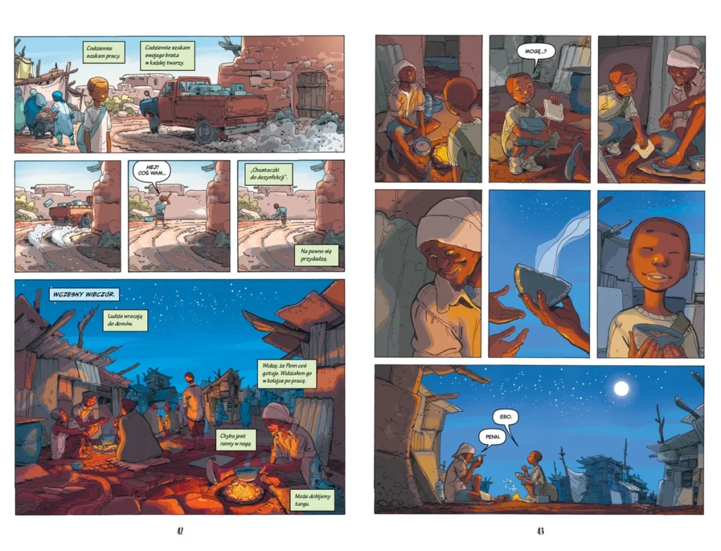 Powieść graficzna, która dotyka jednego z najbardziej aktualnych tematów współczesnego świata – kryzysu migracyjnego. Książka skupia się na emigrantach z Afryki, którzy próbują dostać się do Europy. Problem dotyczy jednak całego świata – w tym granic amerykańskiej i polskiej.