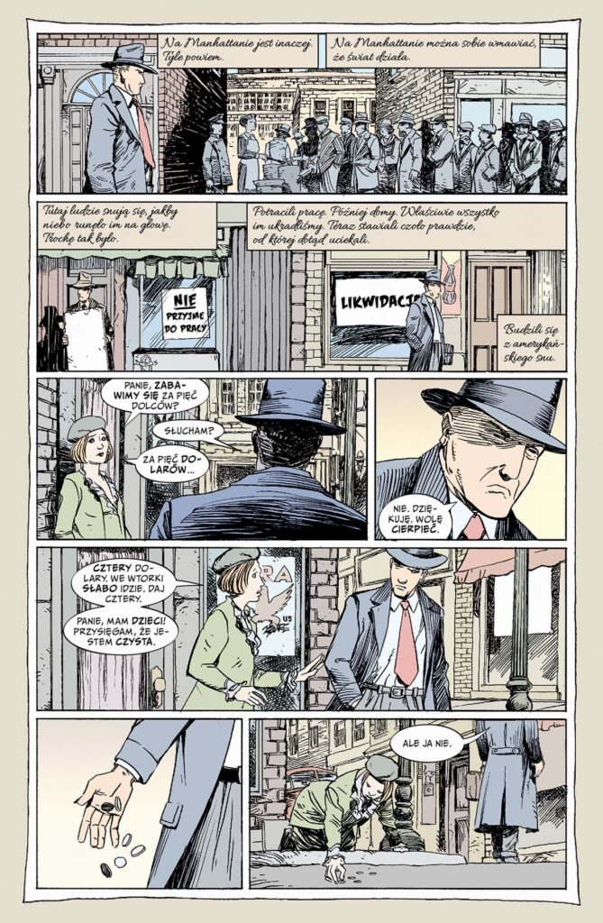 “On to geneza” (przed nią jest jeszcze “Obywatel Taylor”) to bardzo ciekawe spojrzenie na rynek komiksowy i relacje wydawca - autor. Taki Alan Moore wałkuje ów temat od lat w swoich dziełach czerpiąc wprost z życiowych doświadczeń (kwestia praw autorskich, tantiemów itd), a Carey dorzuca do tego jeszcze spojrzenie na mizoginiczne oblicze rynku komiksowego. Co by nie mówić teraz o J.K Rowling to pamiętajmy, że kiedy “Harry Potter i kamień filozoficzny” pojawił się w księgarniach, nie było powszechnie wiadomym, że autorką cyklu o Harrym Potterze jest kobieta. A taką właśnie postacią, niezwykle istotną dla “Niepisanego” jest ukrywająca się za męskim pseudonimem twórczyni komiksowych opowieści o pewnym superbohaterze i to w czasach, kiedy komiksy superbohaterskie dopiero zaczynały w USA swoją drogę do umysłów masowego odbiorcy. Carey łączy tu wstrzasający dramatyzm opowiesci z bezlitosnymi mechanizmami rynku wydawniczego patrząc na to wszystko z jeszcze szerszej perspektywy - niczym Umberto Eco w swych esejach dotyczących literatury i masowej wyobraźni - szukając nie tylko jej uroków, ale i pułapek. To jedna z najlepszych, najbardziej mrocznych i przejmujących historii, które wyszły spod rąk Careya - Tommy (razem z Lizzie) jest tu jedynie obserwatorem, a nasza uwaga skupia się na działaniach jego ojca, którego plan na życie (swoje i syna) coraz wyraźniej klaruje się przed czytelnikiem.