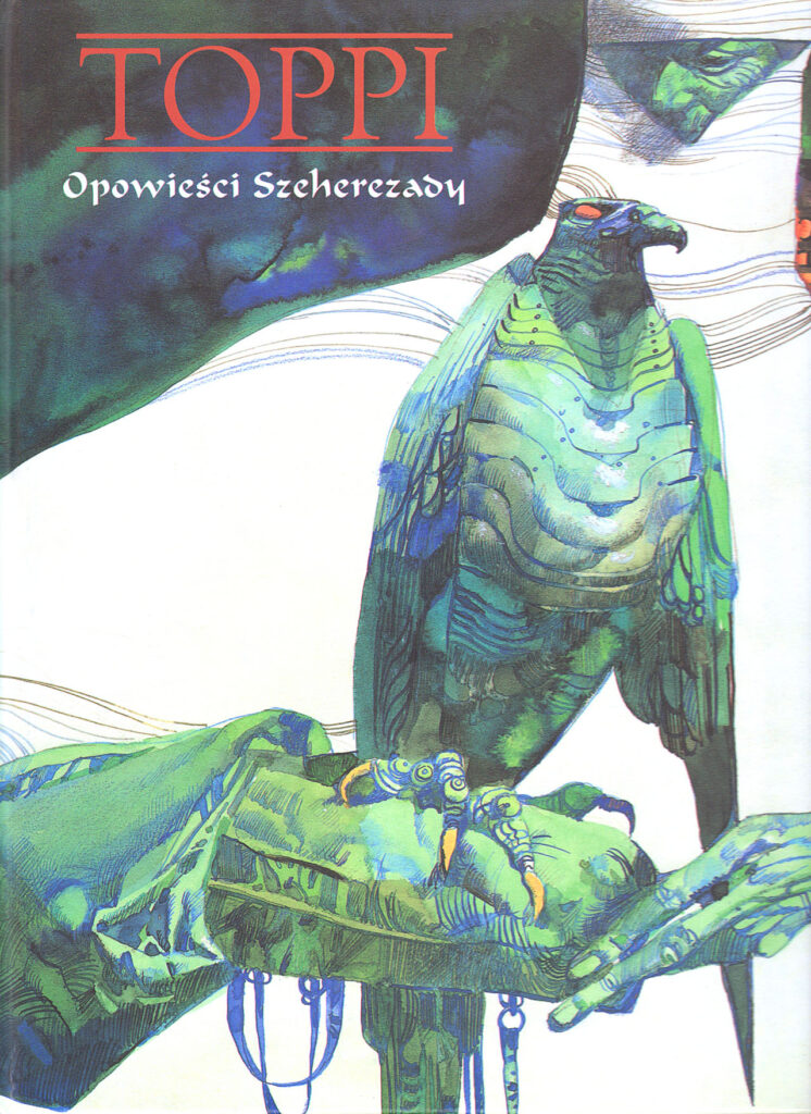 Szeherezada, by uniknąć śmierci, każdej nocy opowiada arabskiemu władcy jedną historię. Jej opowieści wzbudzają tak wielką ciekawość kalifa, że odwleka egzekucję, by móc słuchać ich nadal… Mity-przypowieści pustynne przesycone są mroczną, nasyconą duchem przerażającej codzienności średniowiecznego Wschodu atmosferą. Ilustracje Toppiego doskonale współgrają z fabułą komiksu.