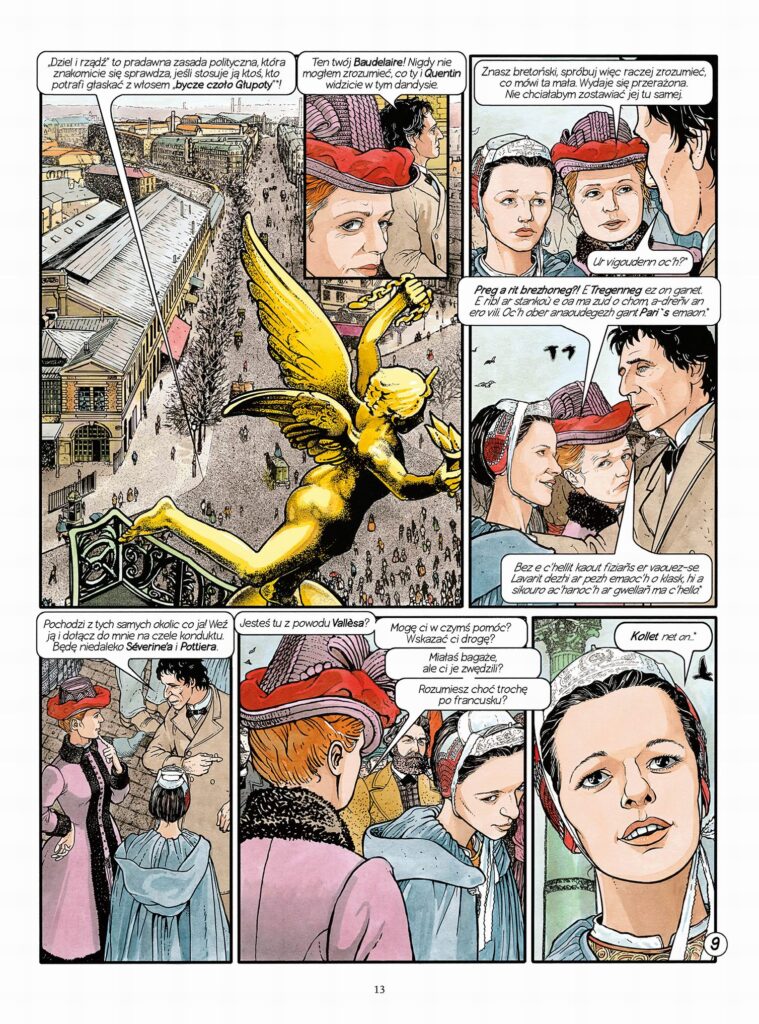 1885 rok. Do Paryża przyjeżdża Klervi, nastoletnia Bretonka z małej wioski. Jest oszołomiona metropolią, słabo zna język francuski i nie ma doświadczenia w pracy. Na szczęście los stawia na jej drodze Clarę, kobietę o tajemniczej przeszłości, dzięki której dziewczyna znajduje pracę i przyjaciół. Losy bohaterek są ukazane na tle ówczesnej Francji, wciąż żyjącej wspomnieniami o okrutnie stłumionej Komunie Paryskiej. Akcja rozgrywa się w barwnym Paryżu końca XIX wieku – mieście artystów i buntowników – oraz w spokojnej, pięknej Bretanii. Dowiemy się też, co wiąże Clarę z niezwykłymi bohaterkami poprzednich tomów „Pasażerów wiatru”.