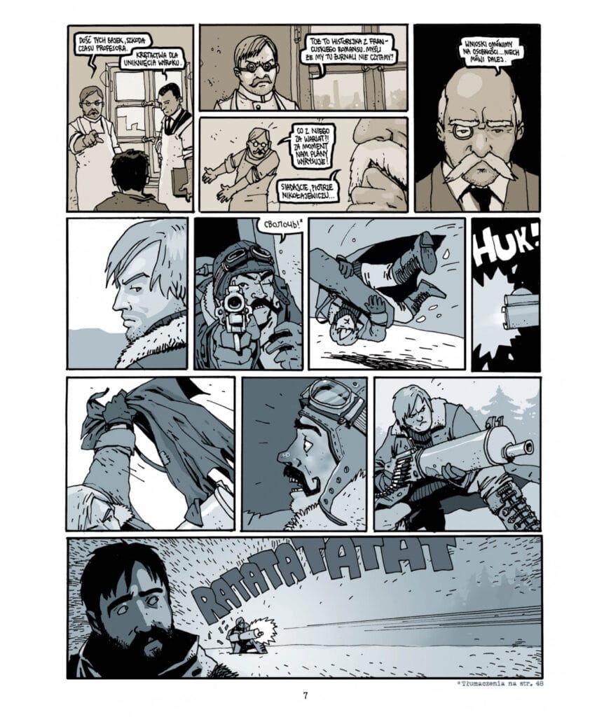 „Pierwsza brygada” to długo wyczekiwany album twórców jednego z pierwszych polskich komiksów steampunkowych – „Nowych przygód Stasia i Nel”. Krzysztof Janicz, Tobiasz Piątkowski (scenarzysta m.in. „48 stron” i „Najczwartszej RP”) i Janusz Wyrzykowski stworzyli wybuchową mieszankę fantastyki, historii, opowieści przygodowej i bryku ze szkolnych lektur. Na kartach ich komiksu spotykają się postaci historyczne, bohaterowie powieści Sienkiewicza i Prusa oraz postaci wymyślone specjalnie na potrzeby „Pierwszej brygady”. Pierwsze plansze tego komiksu ukazywały się na stronie Retrostacji (jedna z największych w Internecie stron poświęconych jednemu z gatunków fantastyki – steampunkowi), gdzie wzbudziły sensację. Teraz doczekaliśmy się wersji albumowej.