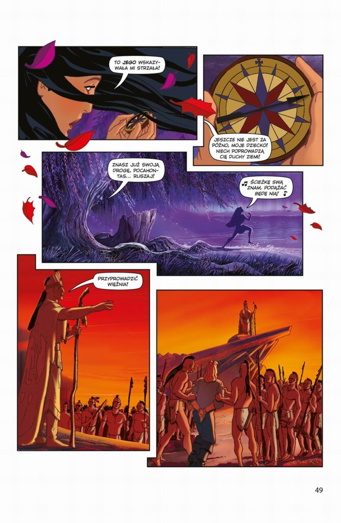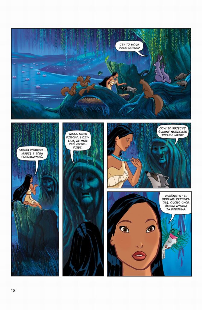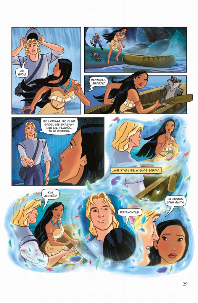 Przeznaczona dla małych i dużych czytelników komiksowa adaptacja wspaniałej filmowej opowieści „Pocahontas”! Kiedy grupa angielskich osadników przybija do brzegów Nowego Świata w poszukiwaniu złota, plemię Powhatanów zostaje zmuszone do obrony swojej ojczyzny. Wkrótce między nieustraszoną Pocahontas, mieszkanką tej krainy, i odważnym Anglikiem Johnem Smithem rozkwita uczucie, które otworzy przed zwaśnionymi stronami drogę do wzajemnego zrozumienia i dialogu. Komiks o tym, że miłość może pokonać wszystkie przeszkody, a otwarte i życzliwe serce pozwala lepiej poznać świat, nieść pokój i nawiązać pozytywne relacje z innymi.