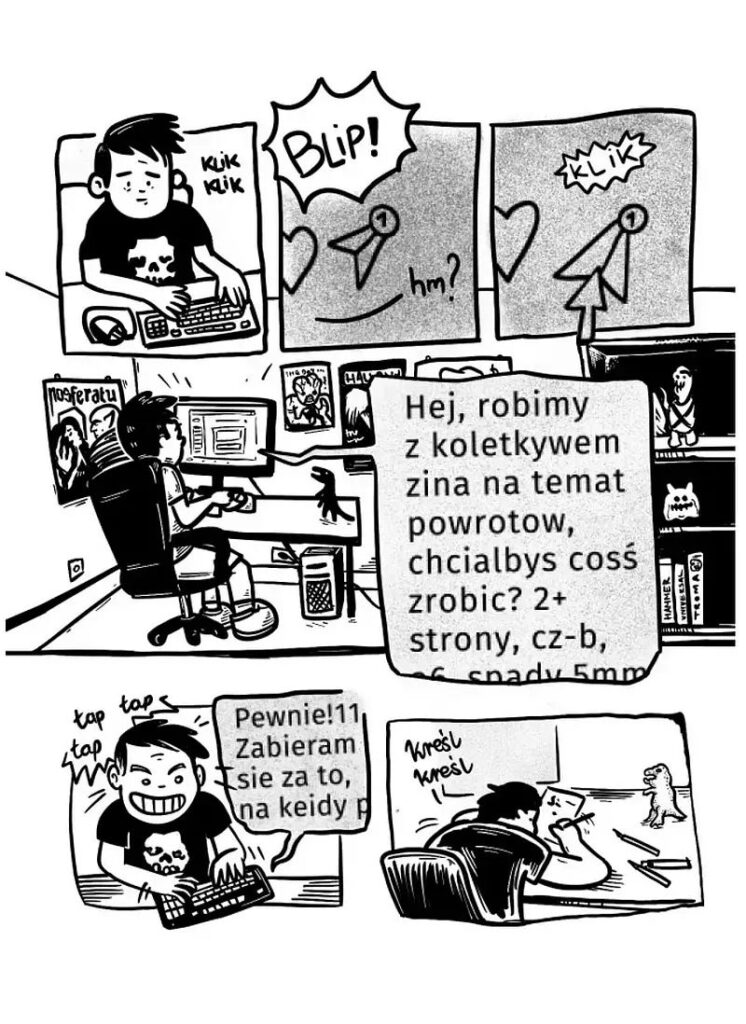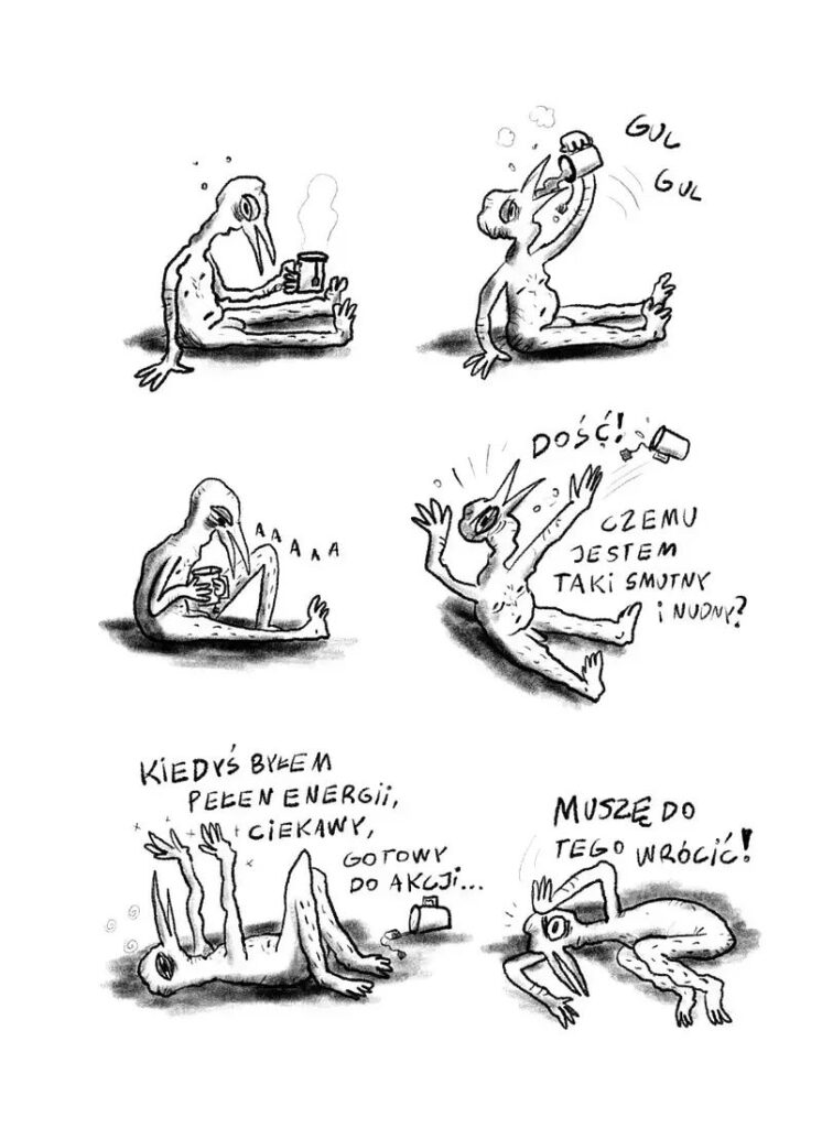 Wielopoziomowe refleksje, stare twarze, znajome miejsca i upływ czasu. Wszystkie te wątki przewijają się na łamach tego zbioru. 14 osób komiksując, podejmuje temat powrotów, interpretuje go z własnej perspektywy i zaprasza do wspólnych tęsknot.