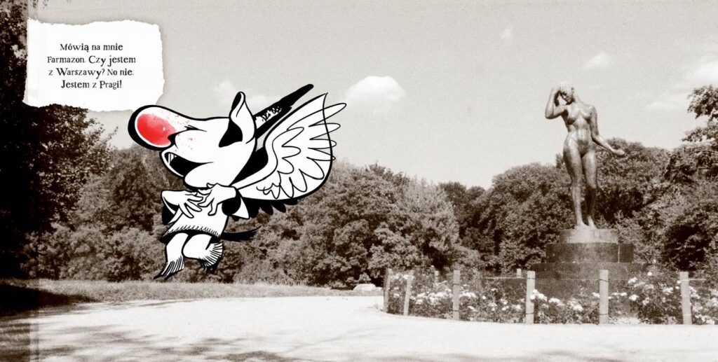 Najnowsza, siódma publikacja pt. Praga gada farmazony nosi charakter autorski i całkiem nowy format. Przemysław J. Olszewski [scenariusz, rysunki, fotografie] przedstawia w niej wywiad z farmazonem, czyli blagierem, picerem, oszustem. Pod postacią małej i wrednej dziary oprowadza ona czytelnika po warszawskiej Pradze, arkanach swej nikczemnej profesji i zakamarkach swojej niejednoznacznej duszy. To crossover książki reportażowej i komiksu, a na pewno książki obrazkowej i albumu fotograficznego.
