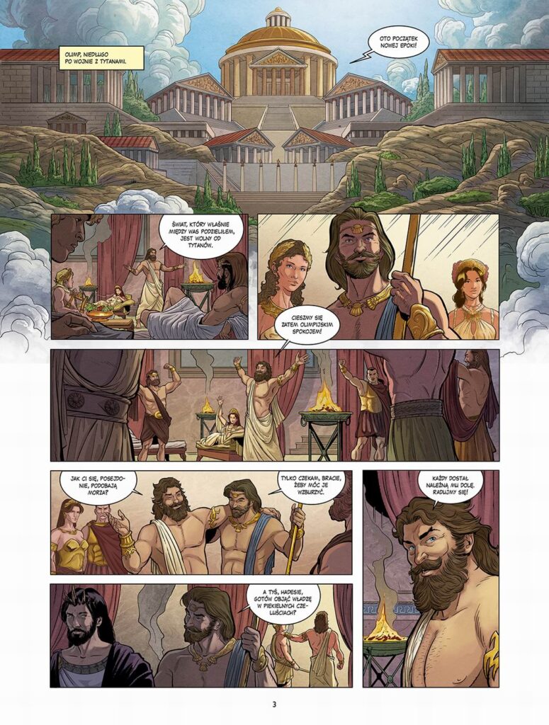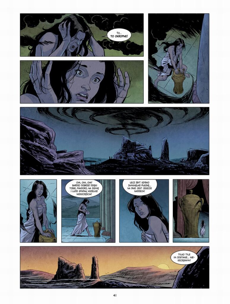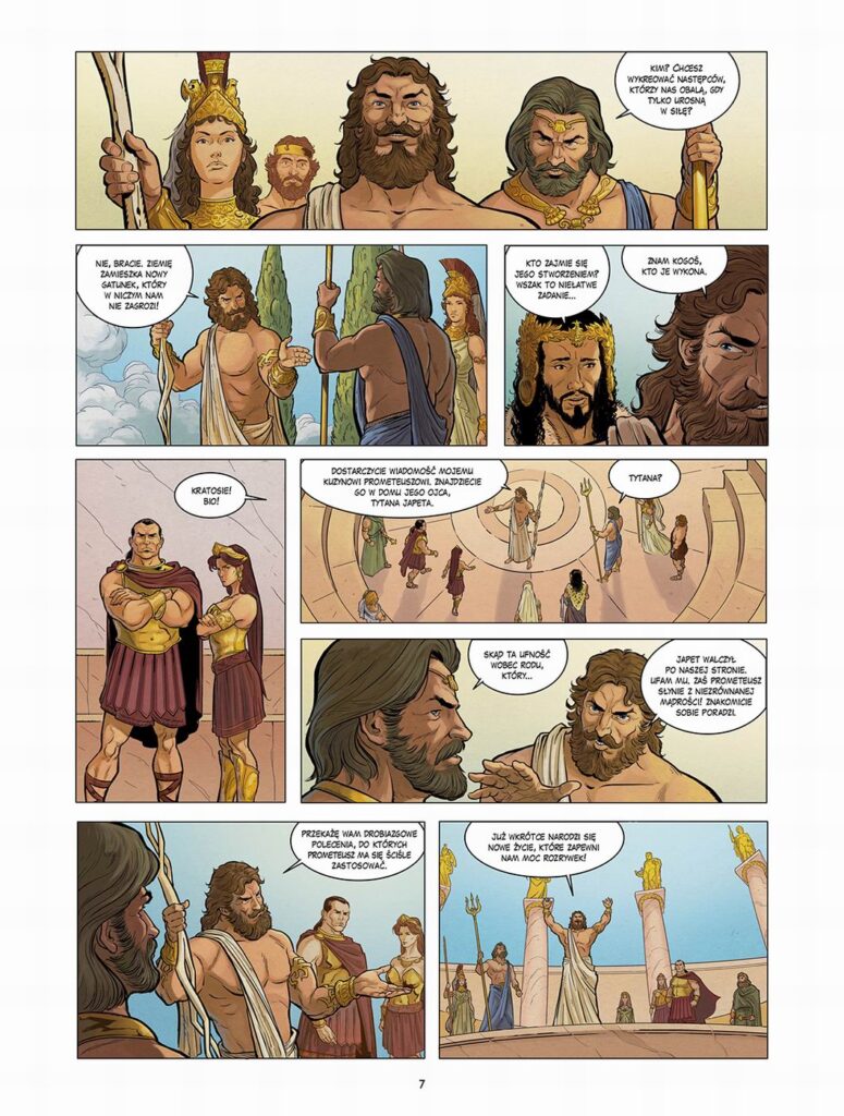 Niezwykła komiksowa adaptacja jednego z najbardziej znanych greckich mitów – mitu o stworzeniu człowieka. Wojna bogów z tytanami właśnie zakończyła się wygraną tych pierwszych pod wodzą Zeusa. Jednak ich radość wkrótce ustępuje miejsca nudzie. We wszechświecie nie dzieje się nic szczególnego. Aby zapewnić bogom rozrywkę i przerwać obezwładniający marazm Zeus prosi Prometeusza o stworzenie śmiertelników, dzięki którym do Kosmosu powrócą życie i historia. Zachwycony, a jednocześnie przerażony zadaniem Prometeusz marzy o powołaniu do życia istoty przewyższającej wszystkie inne gatunki. W tym celu wyposaża człowieka w ogień i rzemiosło. Będzie go to kosztować srogi gniew króla bogów, który w ludziach wnet dostrzeże zagrożenie dla kosmicznego porządku. Aby powstrzymać ich przed porównywaniem się do bogów Zeus ześle na nich zemstę w postaci kobiety, której żaden mężczyzna się nie oprze…