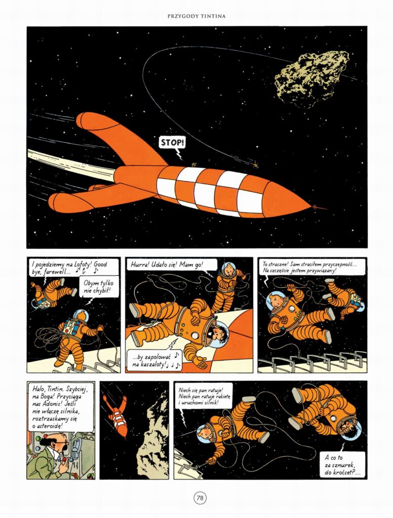 W czasie swoich wypraw Tintin zwiedził już niemal wszystkie zakamarki naszej planety, ale pierwsza przygoda z tego tomu zaprowadzi go dalej, niż mógłby sobie wyobrazić! W albumach „Kierunek Księżyc” i „Spacer po Księżycu” dzielny młodzieniec dołączy do prowadzonego przez profesora Lakmusa programu kosmicznego i wraz z towarzyszami wyruszy na Srebrny Glob! Kosmos jest jednak pełny niebezpieczeństw i nie jest wcale pewne, czy wszystkim z załogi uda się bezpiecznie wrócić na Ziemię… Po tej niezwykłej wyprawie nasz bohater nie będzie niestety mógł zbyt długo cieszyć się zasłużonym odpoczynkiem. Zamek Księżymłyn nawiedza bowiem tajemnicze zjawisko: wszystkie szklane i porcelanowe przedmioty same z siebie rozpadają się na kawałki! Na domiar złego profesorem Lakmusem zaczynają się interesować podejrzani osobnicy. Chcąc mu pomóc, Tintin i kapitan Baryłka trafiają w sam środek międzynarodowej rozgrywki między tajnymi służbami różnych państw. Jak zakończy się sprawa, która przejdzie do kronik dyplomatycznych pod nazwą Afera Lakmusa? Natomiast w albumie „Ładunek koksu” pewne przypadkowe spotkanie sprawi, że nieustępliwy reporter po raz kolejny rzuci się w wir niebezpieczeństw i stawi czoła bezwzględnemu gangowi handlarzy bronią. Na swojej drodze Tintin spotka wiele znajomych twarzy, a dochodzenie zaprowadzi go aż na wody Morza Czerwonego. Odkryje także, że na czele jego przeciwników stoi prawdziwy geniusz zbrodni, a przemyt broni nie jest jedyną okropnością, jakiej się dopuszczają!
