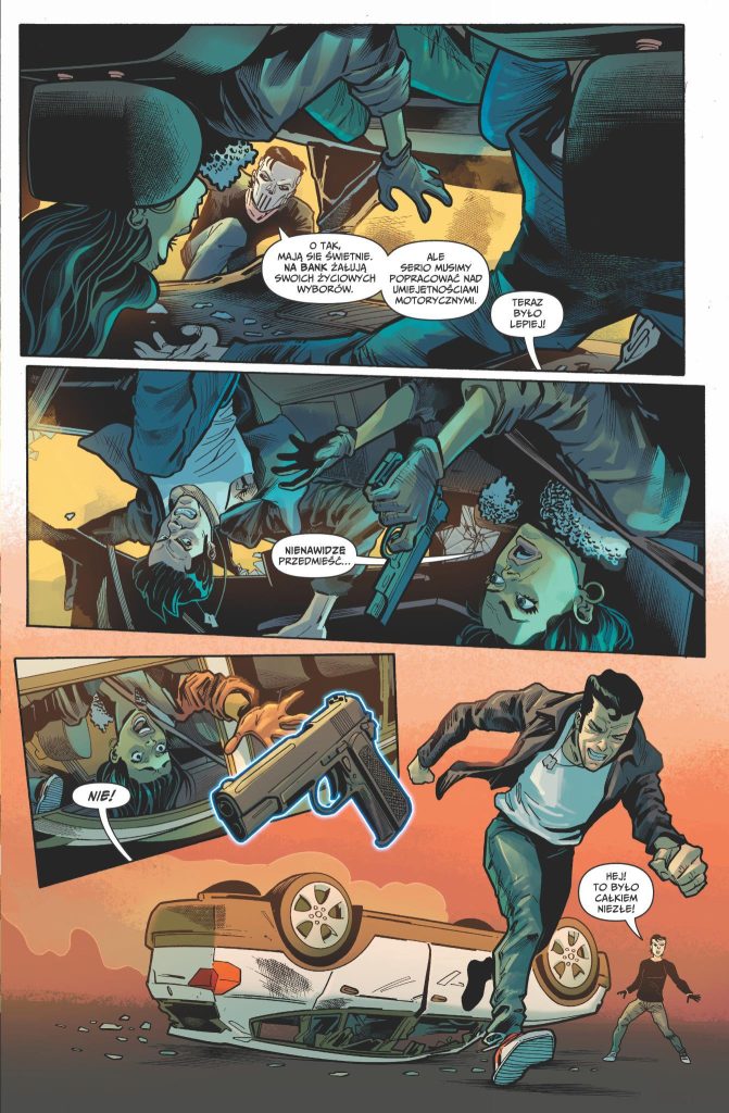 Wizualnie? Wzorowo. Kolory dobrane świetnie, kreska nowoczesna i czytelna. To komiks, który po prostu dobrze się ogląda – nawet jeśli fabularnie nie zawsze dowozi.