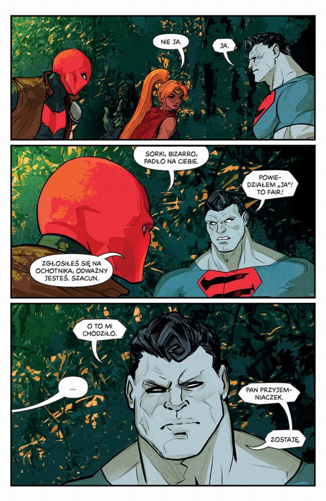 Outlaws podejmują próbę działania zgodnie z prawem i… ponoszą spektakularną porażkę. Były Robin, była Wonder Woman i, no cóż, cudaczny Superman – czyli Jason Todd, Artemida Grace i Bizarro – od samego początku czuli się gorsi. Właśnie dlatego założyli Outlaws, grupę utalentowanych bohaterów do wynajęcia. Wszystko jednak się komplikuje – zlecenie zdobycia starożytnego posążka z Wyspy Dinozaurów prowadzi do konfrontacji z Ligą Sprawiedliwości. Red Hood musi udowodnić, że jego drużyna nie jest jedynie zbieraniną rezerwowych.