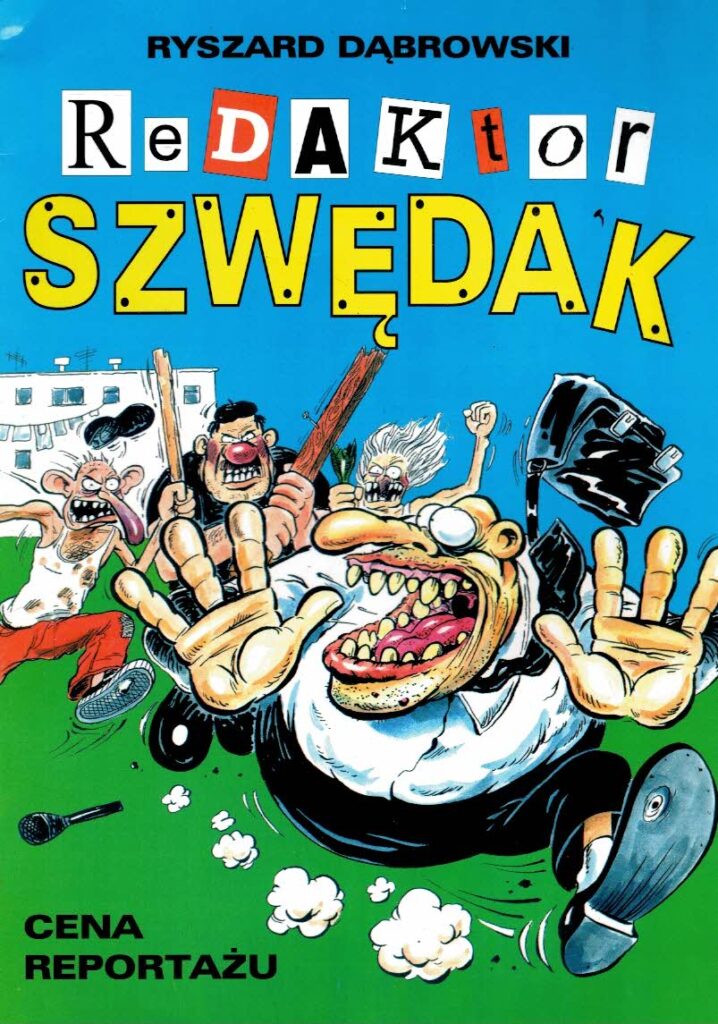 Polska rzeczywistość w krzywym zwierciadle satyry Ryśka Dąbrowskiego – najbardziej znanego jako twórca komiksów o Likwidatorze. Redaktor Szwędak to jego kolejny bohater – wścibski, ograniczony dziennikarzyna o inteligencji mało rozgarniętego kibica piłkarskiego. Idealne alter ego prawdziwego człowieka polskich mediów. Bywa wśród tych z prawej i tych z lewej, wśród polityków i zwykłych ludzi i za cholerę nic z tego nie rozumie. Czytelnik ma ubaw po pachy, choć jest to czasami śmiech przez łzy.