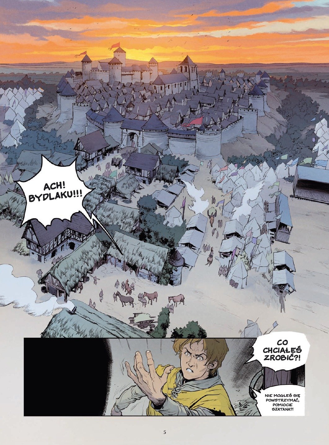 Dekonstrukcja rycerskiego etosu w popkulturze nie jest zjawiskiem przesadnie nowym. By wspomnieć choćby wydaną niedawną przez Skarpę Warszawską, znakomitą powieść Łukasza Malinowskiego „Rogata dusza”, który z zacięciem godnym historyka (którym zresztą jest), rekonstruuje prawdziwy obraz rycerskich turniejów. Ale komiksowi duetu Brugeas / Toulhoat bliżej do estetyki filmu „Obłędny rycerz” w reżyserii Briana Heglelanda.