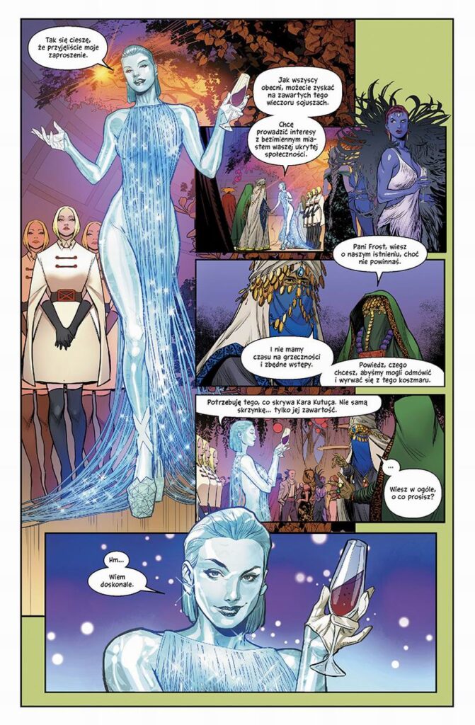 Hellfire Gala to największe wydarzenie sezonu w wielkiej polityce, na którym zjawiają się wszyscy, którzy coś znaczą: mutanci z Krakoi, Avengers, Fantastyczna Czwórka oraz inni – niekiedy niespodziewani – goście. Bliscy sojusznicy i zagorzali wrogowie paradują obok siebie w modnych strojach, słuchają telepatycznych koncertów, witają pierwszą demokratycznie wybraną drużynę X-Men i… zmieniają świat. Dosłownie! Kto zyska dzięki gali nowy dom? Kto przypłaci ją życiem?