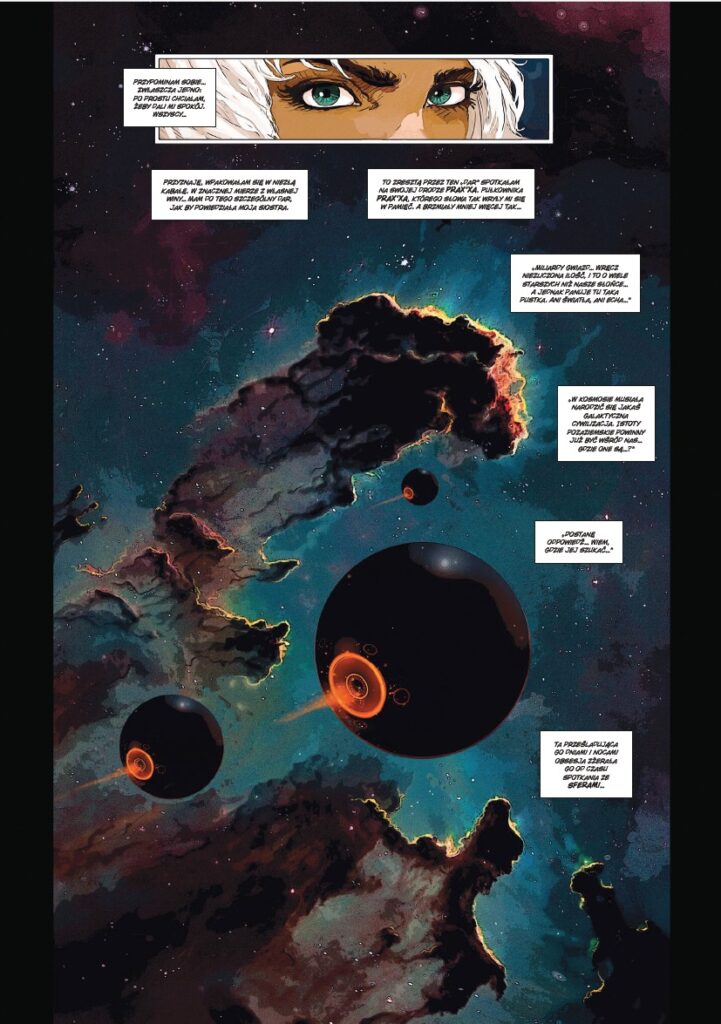 Czy ta wizja przemawia do czytelnika? Jak wspomniałem wyżej - jest staranna. Trochę brakuje mi w tym projekcie odrobiny szaleństwa, jakichś niespodziewanych wydarzeń, czy po prostu większych emocji oraz - to pewnie kwestia gatunkowych przyzwyczajeń - ciągnącego fabułę, wiodącego prym bohatera. Zastanawiałem się, czy mamy po prostu do czynienia z generycznym frankofonem, który udaje że takim nie jest, ale chyba nie można tak jednoznacznie ocenić “Sfer”. Komiks wzbudza ciekawość, nie wszystko jest w nim oczywiste, mogą się tu jeszcze wydarzyć duże, nieprzewidywalne rzeczy - na takie czekam w kontynuacji, na razie dając “Sferom” kredyt zaufania.